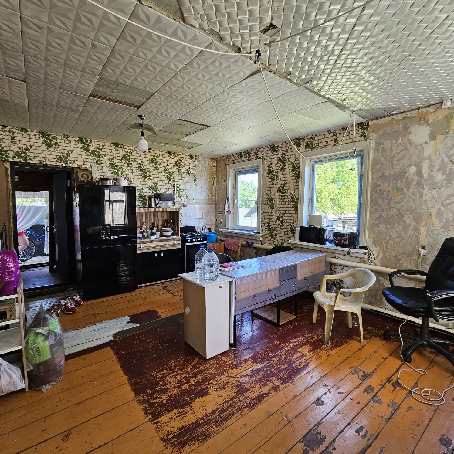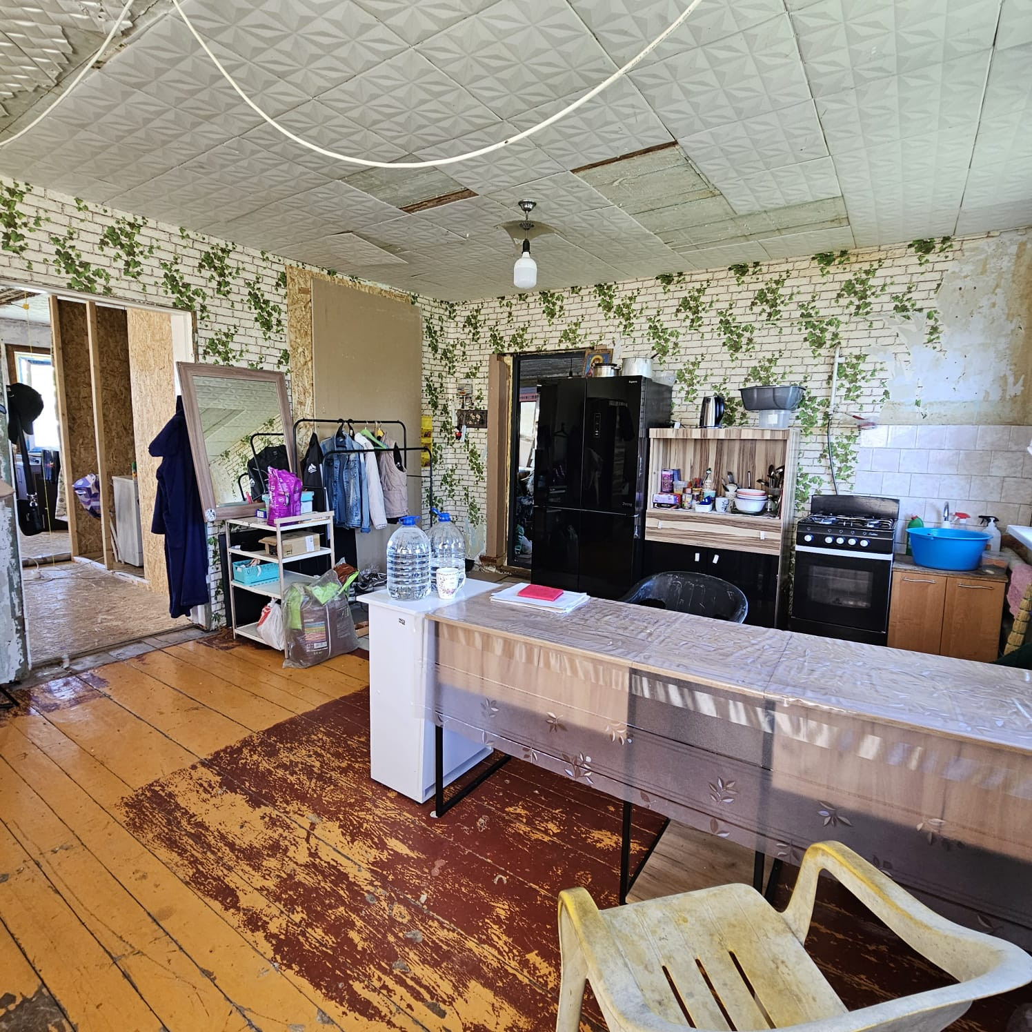 В доме з комнаты, вода, слив, заменены окна на пластиковые, на участке колодец и теплица. В цену входит новая душевая кабина, новая кухня.