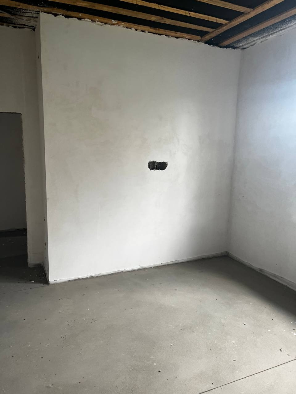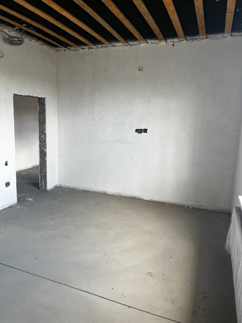 • На стенах чистовая штукатурка, на полу лазерная стяжка.
