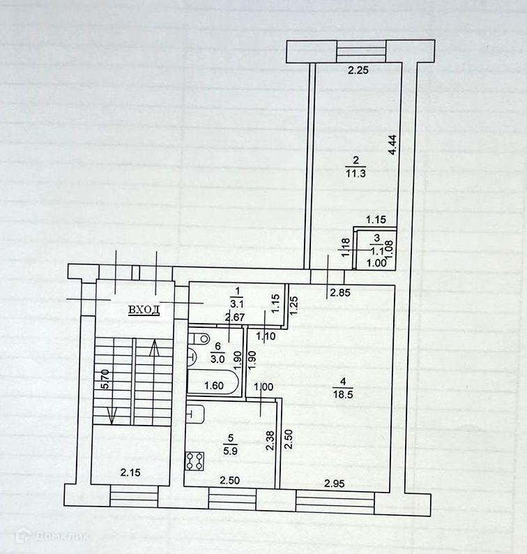 Общая площадь 42.9 м2