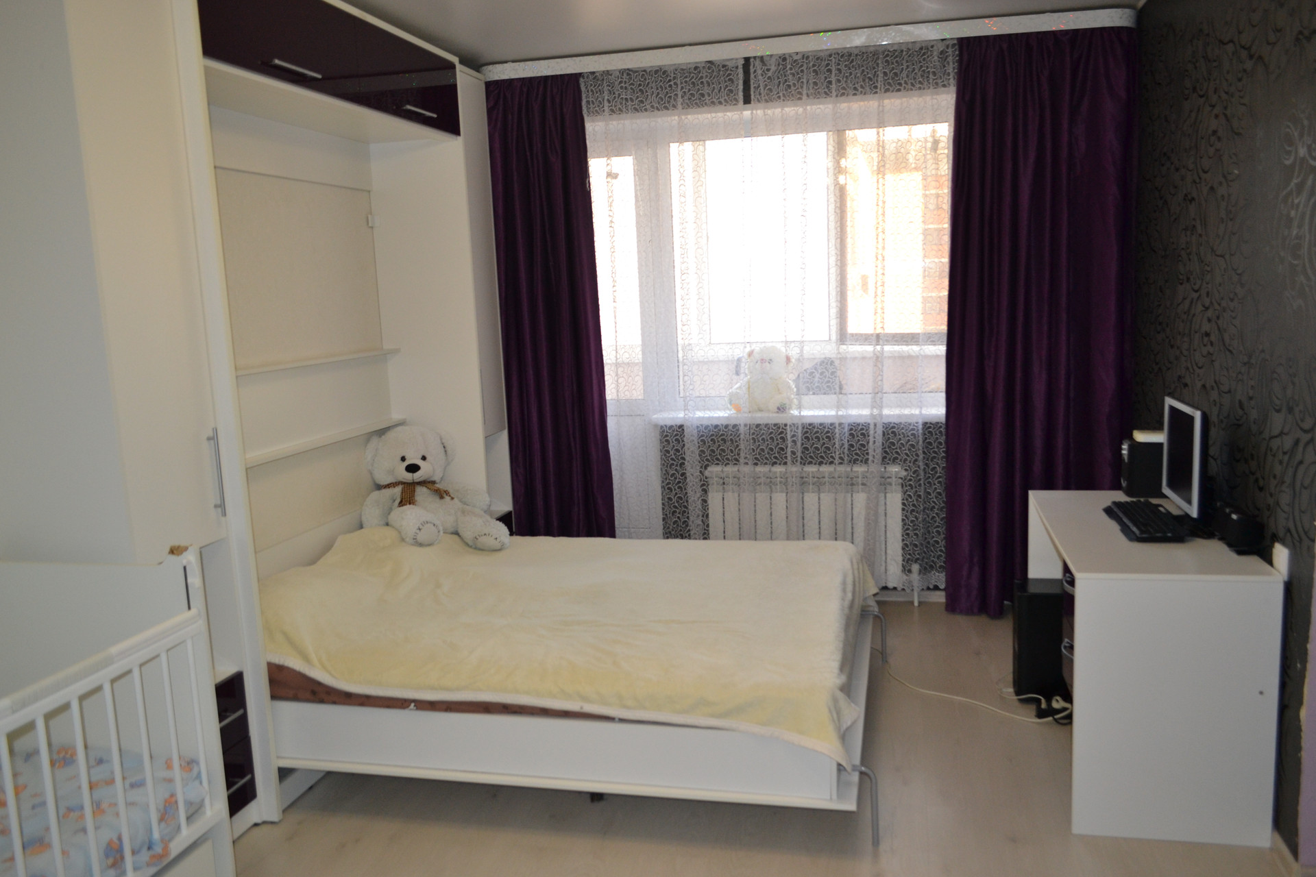 Однокомнатная квартира с мебелью, общая площадь 43 м.кв. с остекленной лоджией, 3 этаж, квартира в середине дома, дому 5 лет, собственность 5 лет, окна на южную сторону во двор с видом на детскую площадку, инфраструктура в шаговой доступности (школы, дет. сады, магазины, дет. парк), собственное отопление (котел-колонка), мебель в комнате (шкаф-кровать трансформер, шкаф купэ, комп. стол), мебель на кухне (кухонный гарнитур с встроенной газовой панелью и духовым электрическом шкафом, обеденный стол, стулья), мебель для прихожий. Интернет. Свои счетчики (газ, вода, свет день-ночь). Отделка комнаты (ламинат, натяжной потолок, обои). Отделка кухни (ламинат, натяжной потолок, декоративная штукатурка). Отделка санузла (керамическая плитка).