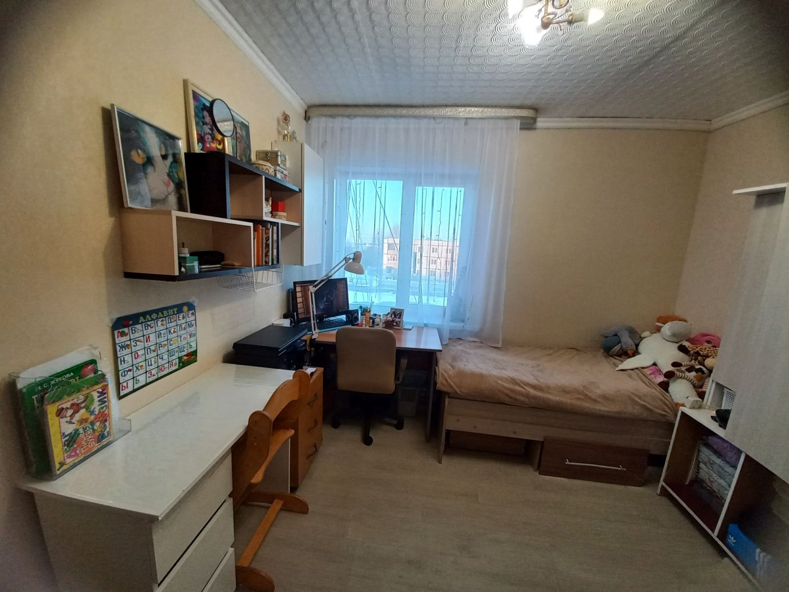 Комнаты раздельные,  на полу линолеум.  Санузел совмещён, выложен плиткой. Балкон застеклён. Крыша не течёт,  потолок всегда сухой.