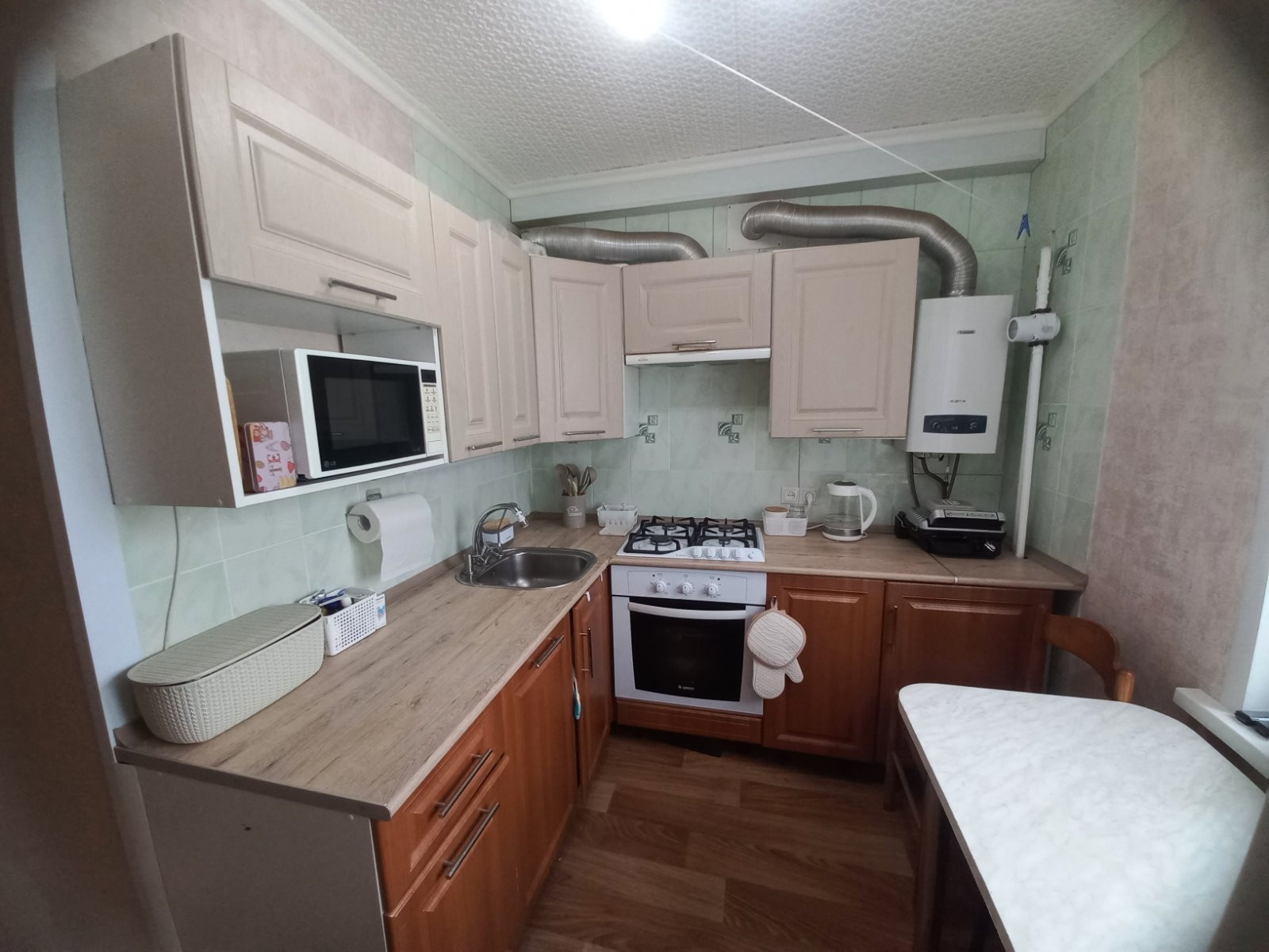 В квартире и на балконе косметический ремонт, сделан недавно. На газ и воду установлены счётчики. В подарок остаётся кондиционер, кухонный гарнитур, раковина в ванной комнате, проточный фильтр для воды.