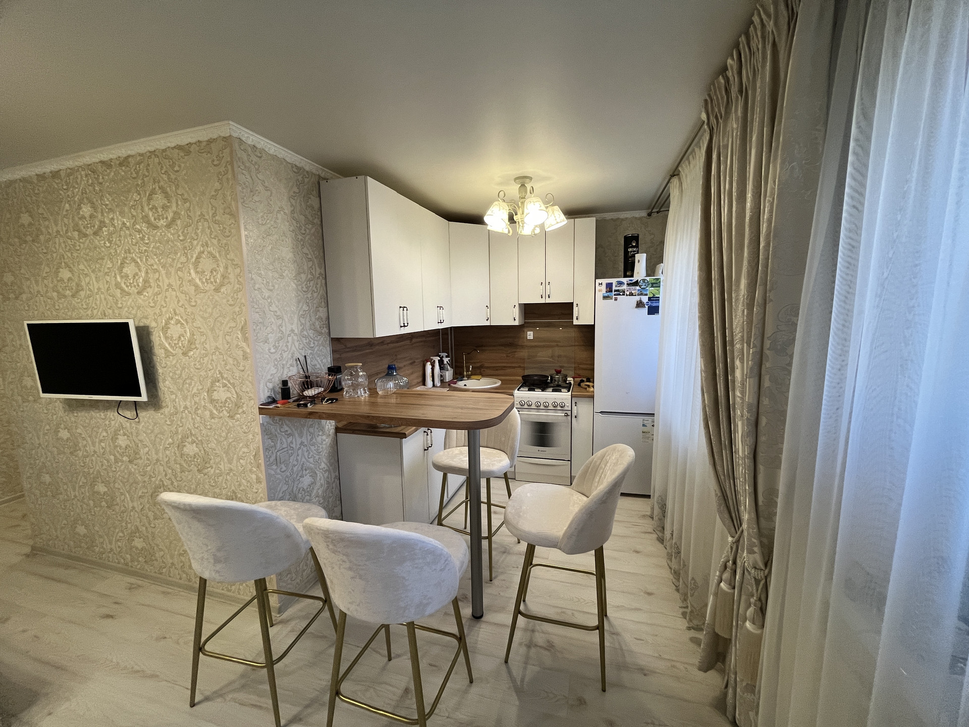 В квартире был произведен капитальный ремонт начиная от замены электропроводки, заливки ровного пола, штукатурка и выравнивание стен, заканчивая установкой встроенной современной кухни! Были произведены ремонтные работы по благоустройству двора в связи с чем были организованны асфальтированные парковочные места для личных автомобилей жильцов а так же выполнен ремонт тротуаров и входных групп в подъезды дома.