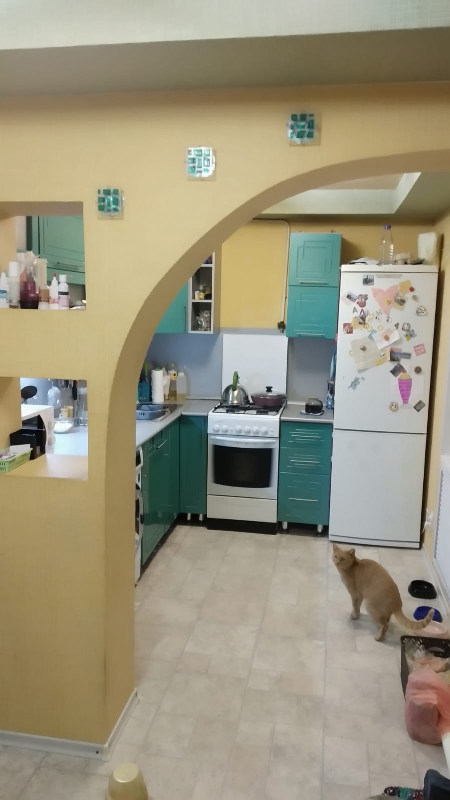 Коммуникации: газ, центральный водопровод, канализационная яма, новое отопление (трубы полипропилен, радиаторы биметалл), новая электро-проводка. Кухонный гарнитур + плита остаются.