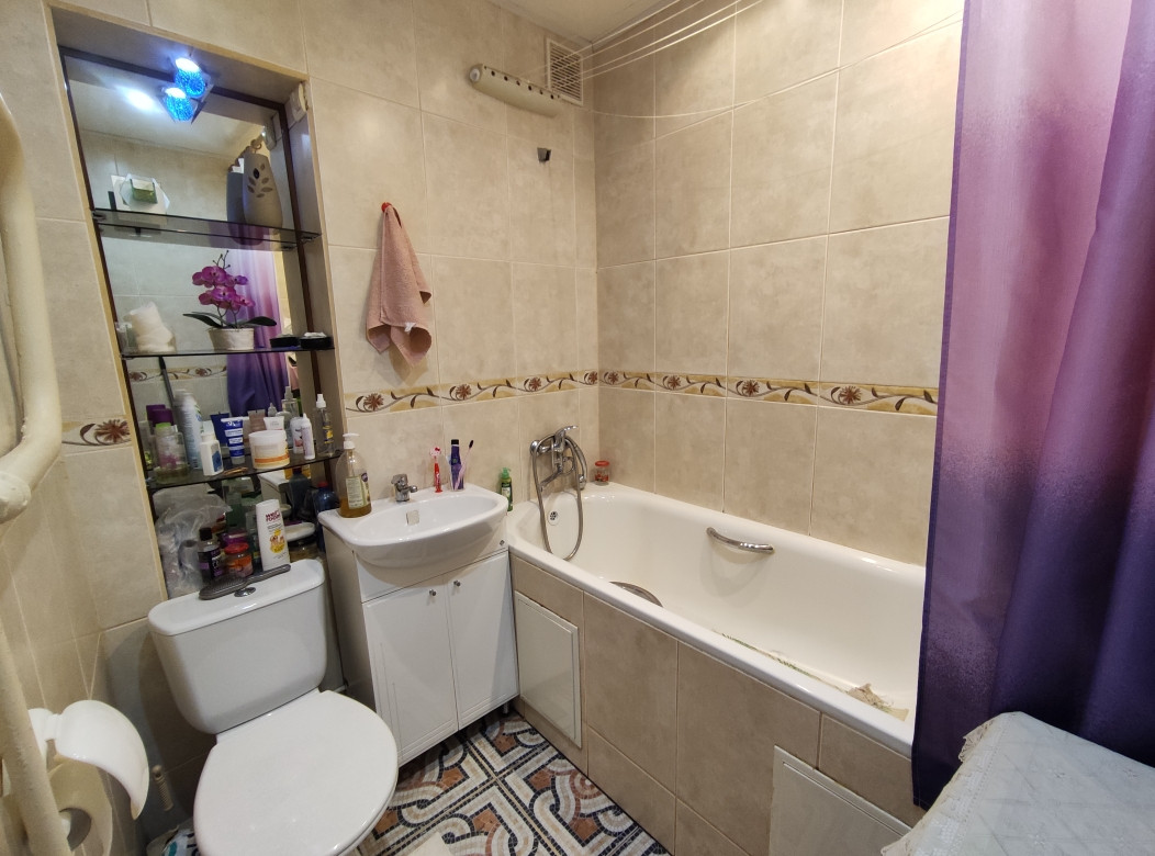 Квартира-студия (мс) в отличном состоянии, 32,5 м2, не угловая, чистая, тёплая. Большой, совмещённый с/у, стены и пол - кафель. Пол в коридоре - кафель. Окна ПВХ, кондиционер.