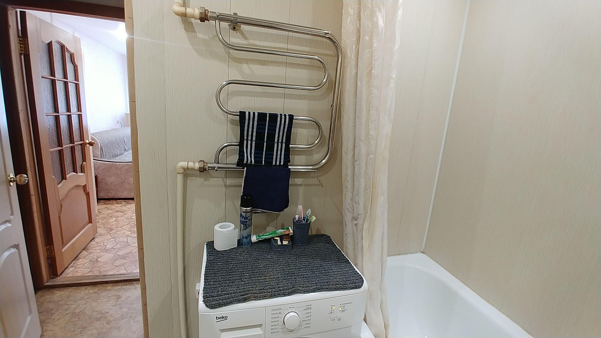 Установлена автоматическая газовая колонка, т.е. всегда имеется горячая вода.