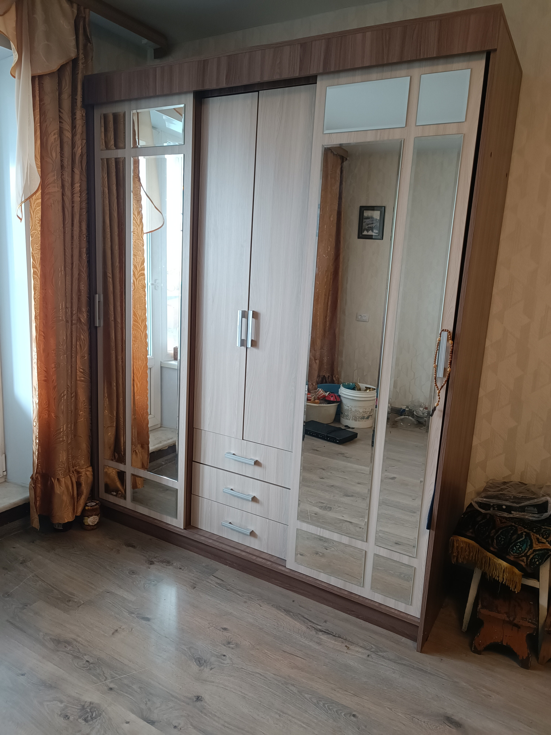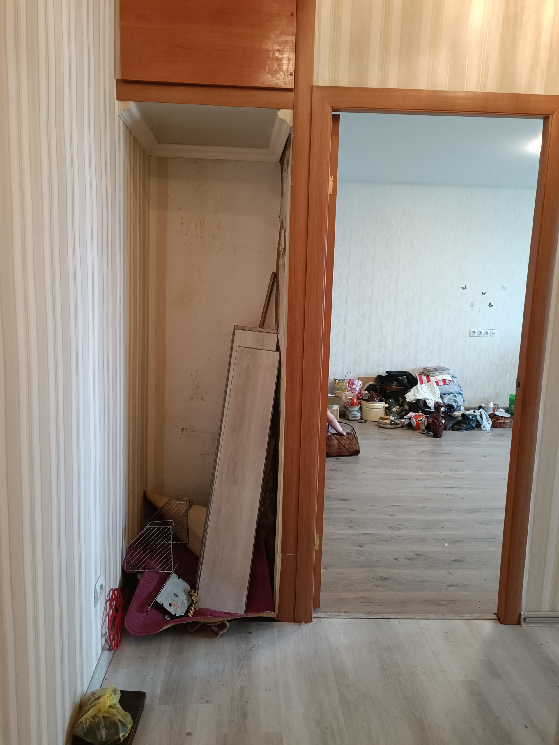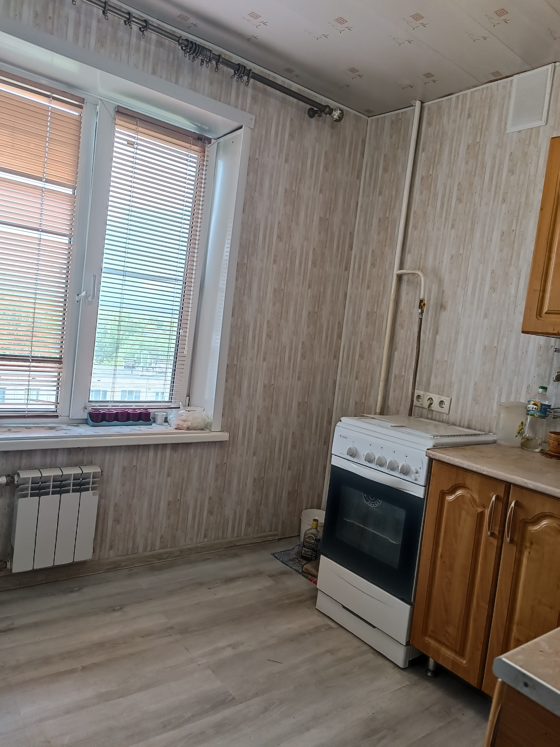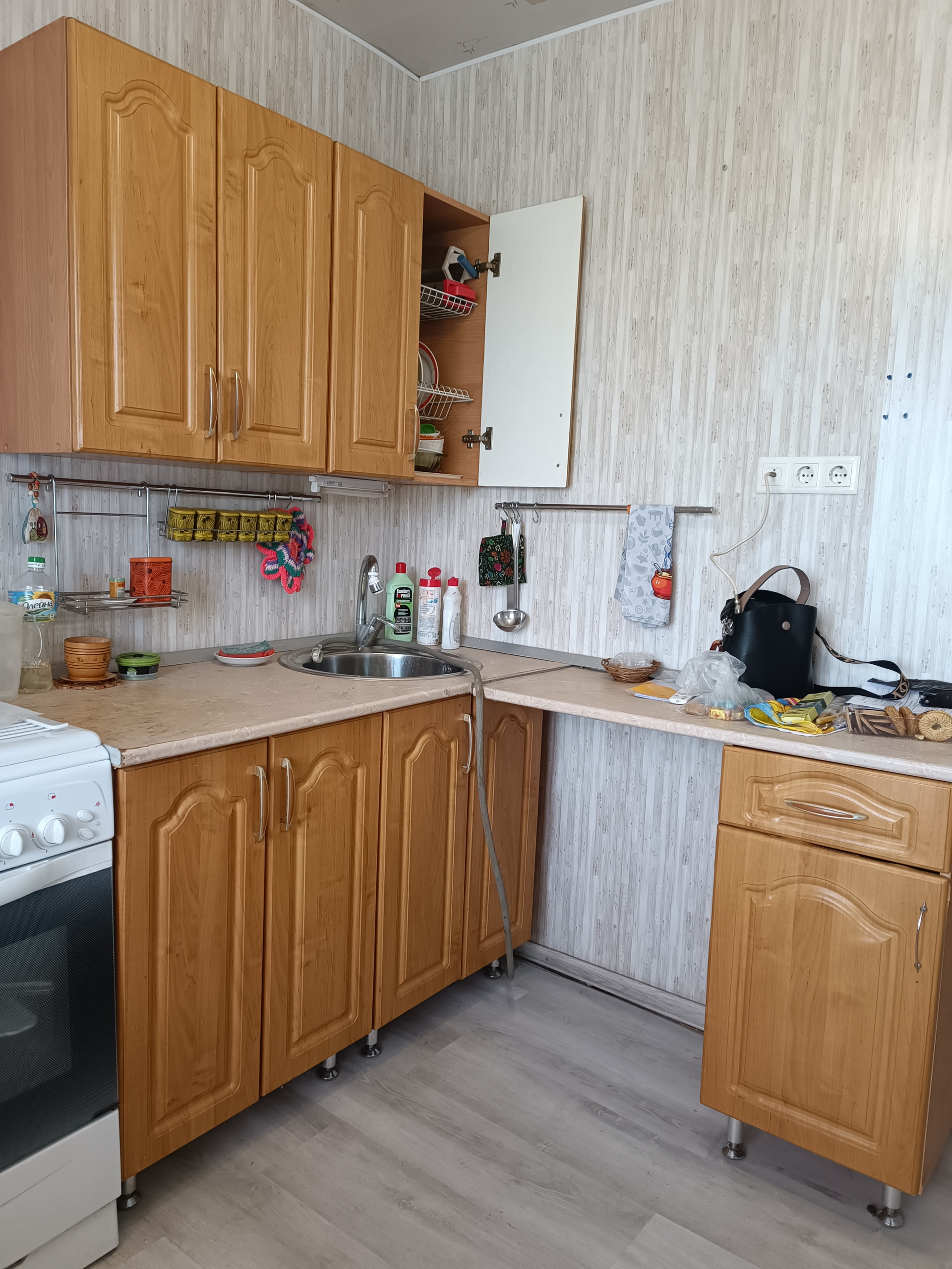 Новым владельцам остается кухонный гарнитур и шкаф для хранения вещей.