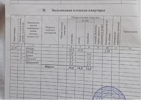 Общая площадь 30 м2