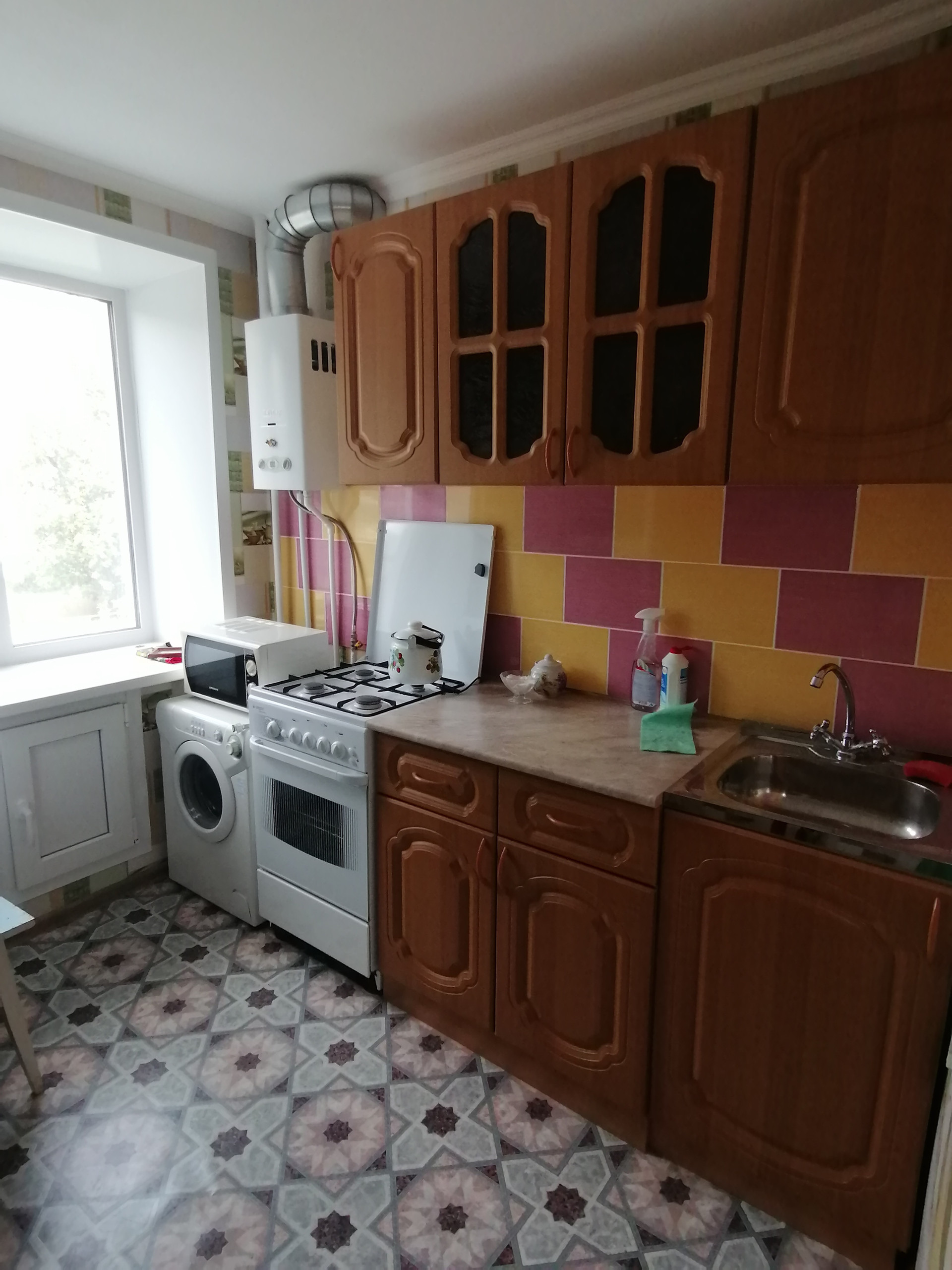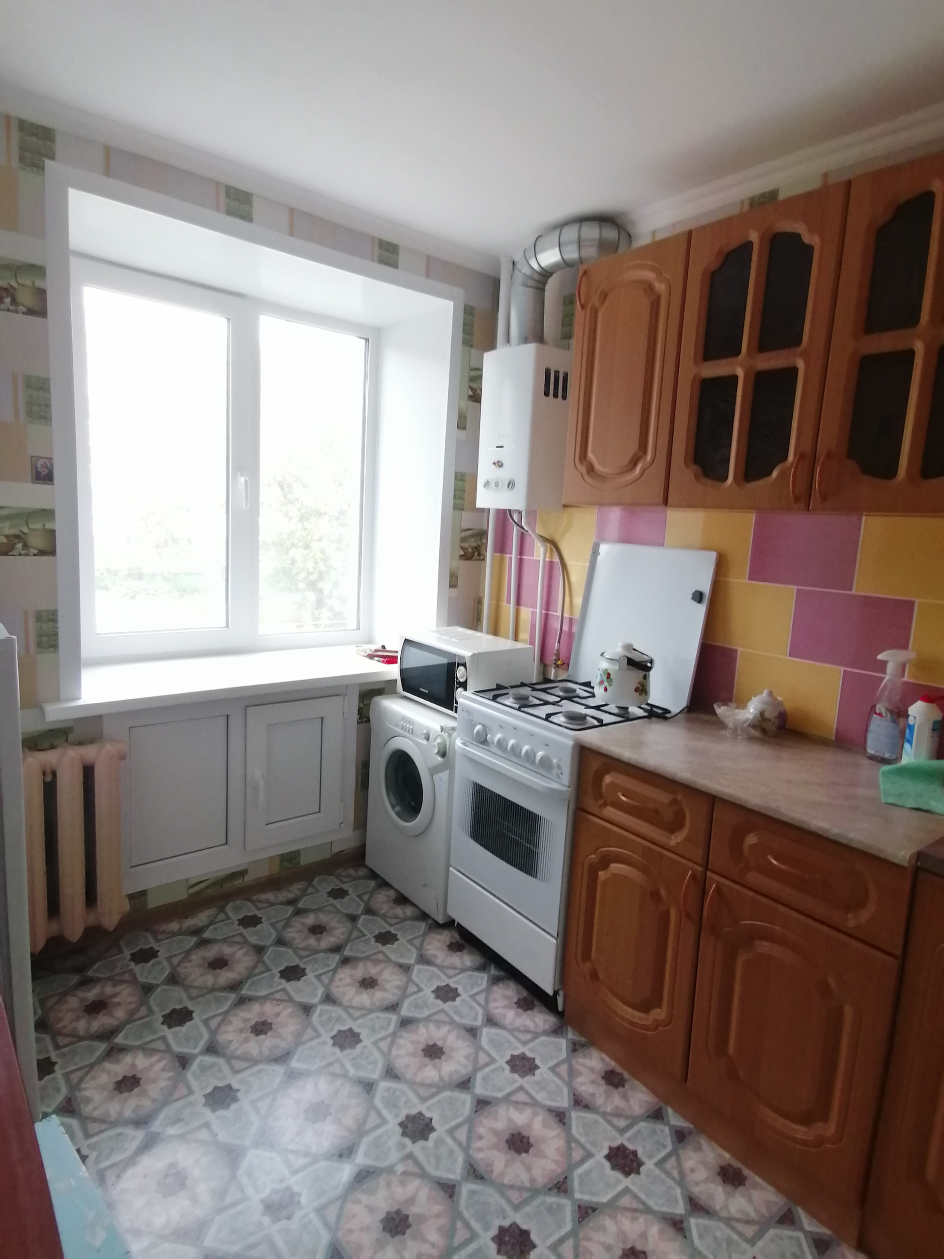 Квартира после капитального ремонта. Окна ПВХ,натяжные потолки,новые входная и межкомнатные двери,стены выровнены,полы перестелены,новые радиаторы,ванна кафель,новая сантехника.Большая кухня.Кухонный гарнитур остается.