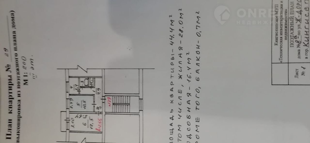 2-комнатная квартира, 44.5 м2, этаж 3 / 5, на продажу в Кингисеппе, Железнодорожная улица, 8А