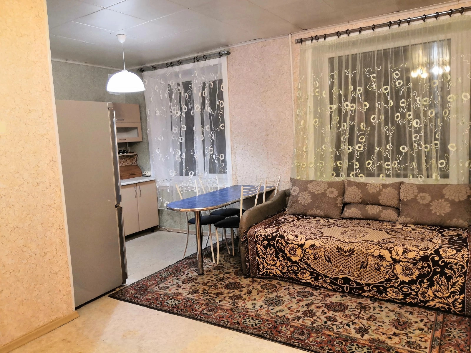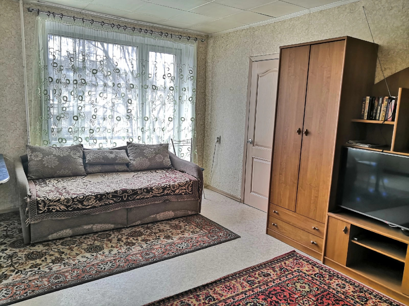 Двухкомнатная квартира на четвёртом этаже в теплом кирпичном доме. Одна комната объединена с кухней. Вся мебель, техника, посуда, в общем абсолютно все, что есть в квартире, остаётся новым собственникам.