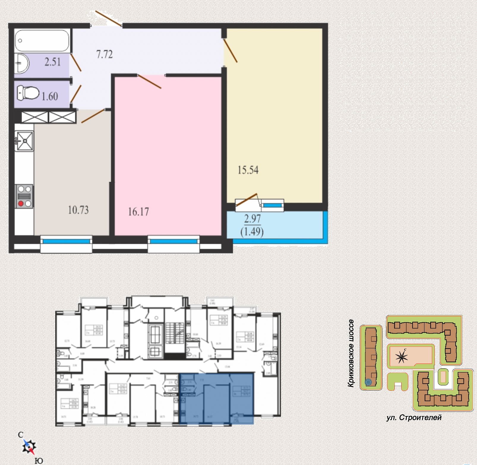 Общая площадь 54.3 м2