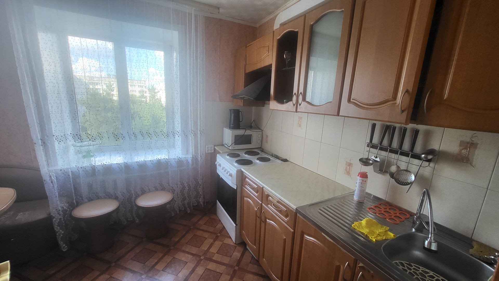 Трехкомнатная квартира на седьмом этаже, все комнаты раздельные, санузел так же раздельный. Дом кирпичный, теплый. Организовано свое ТСЖ, на первом этаже сидит консьерж. Детский сад в двух минутах, школа в пяти минутах. Через дорогу городской рынок, на нем, кстати, все еще продаются кое-какие продукты из Эстонии. Продуктовый магазин прямо в доме.