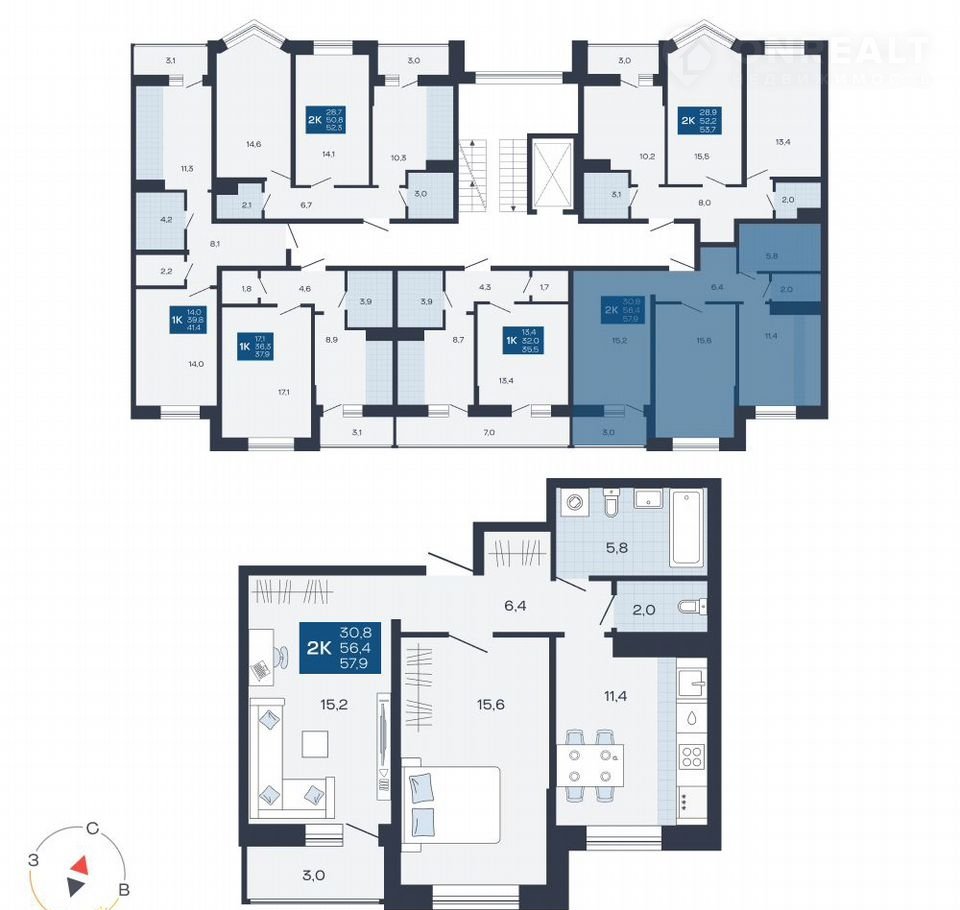 ▪Общая площадь 56,4 кв.м.