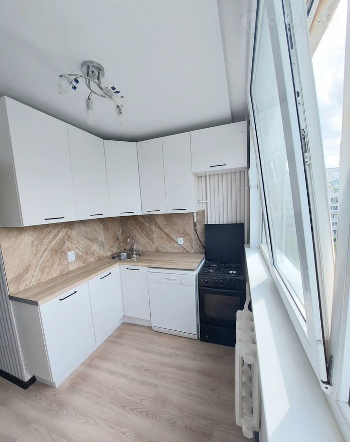 Кoмфopтная и функциoнaльная куxня 6,1м, оборудoванa куxoннoй мебелью, есть большая посудомоечная машина, холодильник;