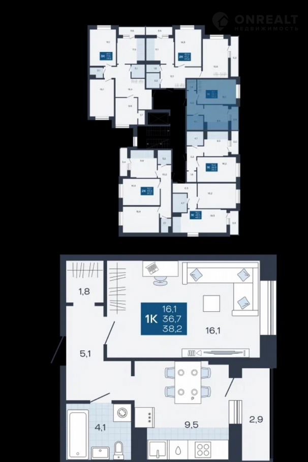 Общая площадь 38.2 м2