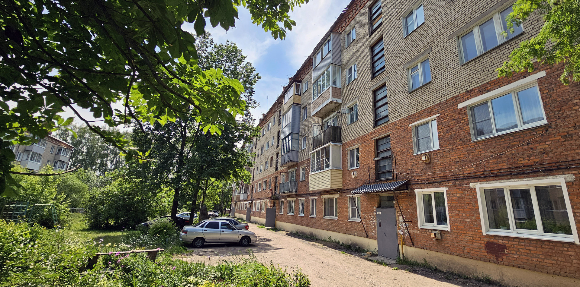 Ухоженный, озелененный двор, новая спортивная площадка, детская площадка, свободные парковочные места, места отдыха.