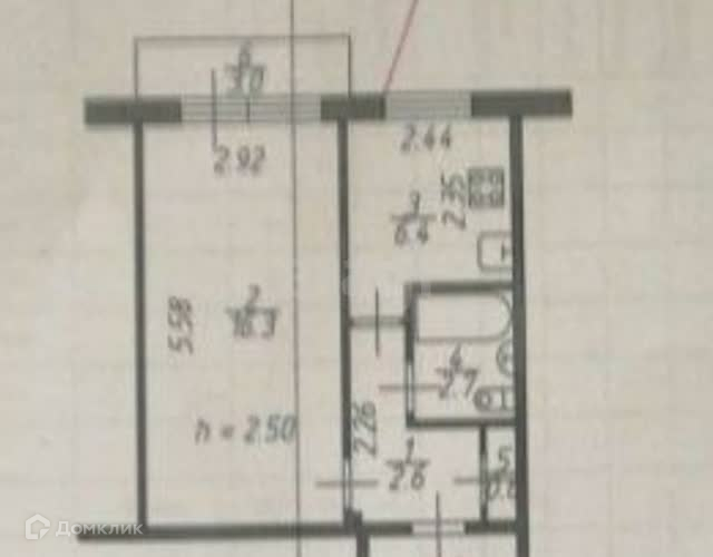Общая площадь 28.6 м2