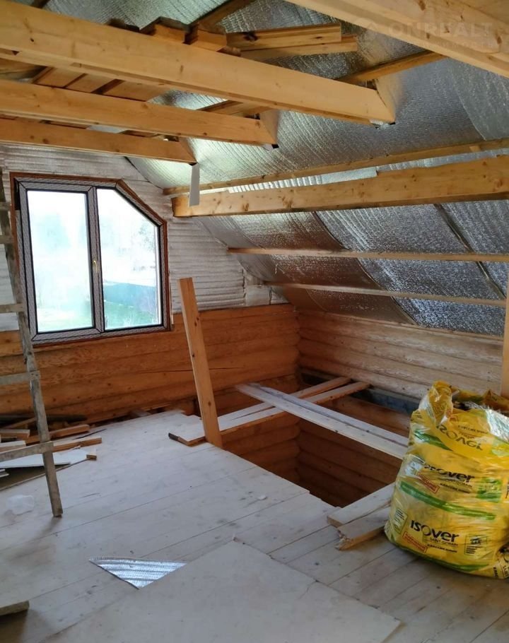 Пол первого этажа утеплен минеральной ватой 10 см, покрыт шпунтованной доской. Межэтажное перекрытие так же заполнено минеральной ватой для шумоизоляции. Мансарда утеплена 20 см. Кровля мягкая – Ондулин.