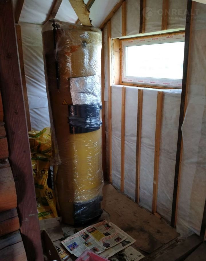 По первому этажу разведено отопление, радиаторы и трубы для второго этажа закуплены (их передаю с домом). В котельной установлен дровяной котел длительного вертикального горения.