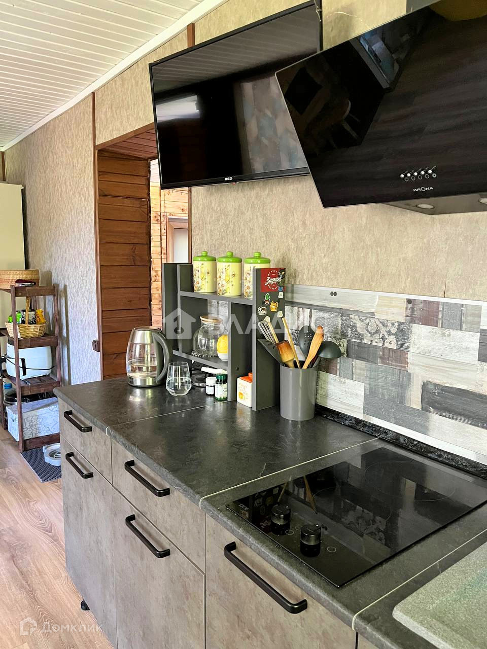 В рубленой части дом разделен на два помещения: просторную кухню-гостинную и спальню.