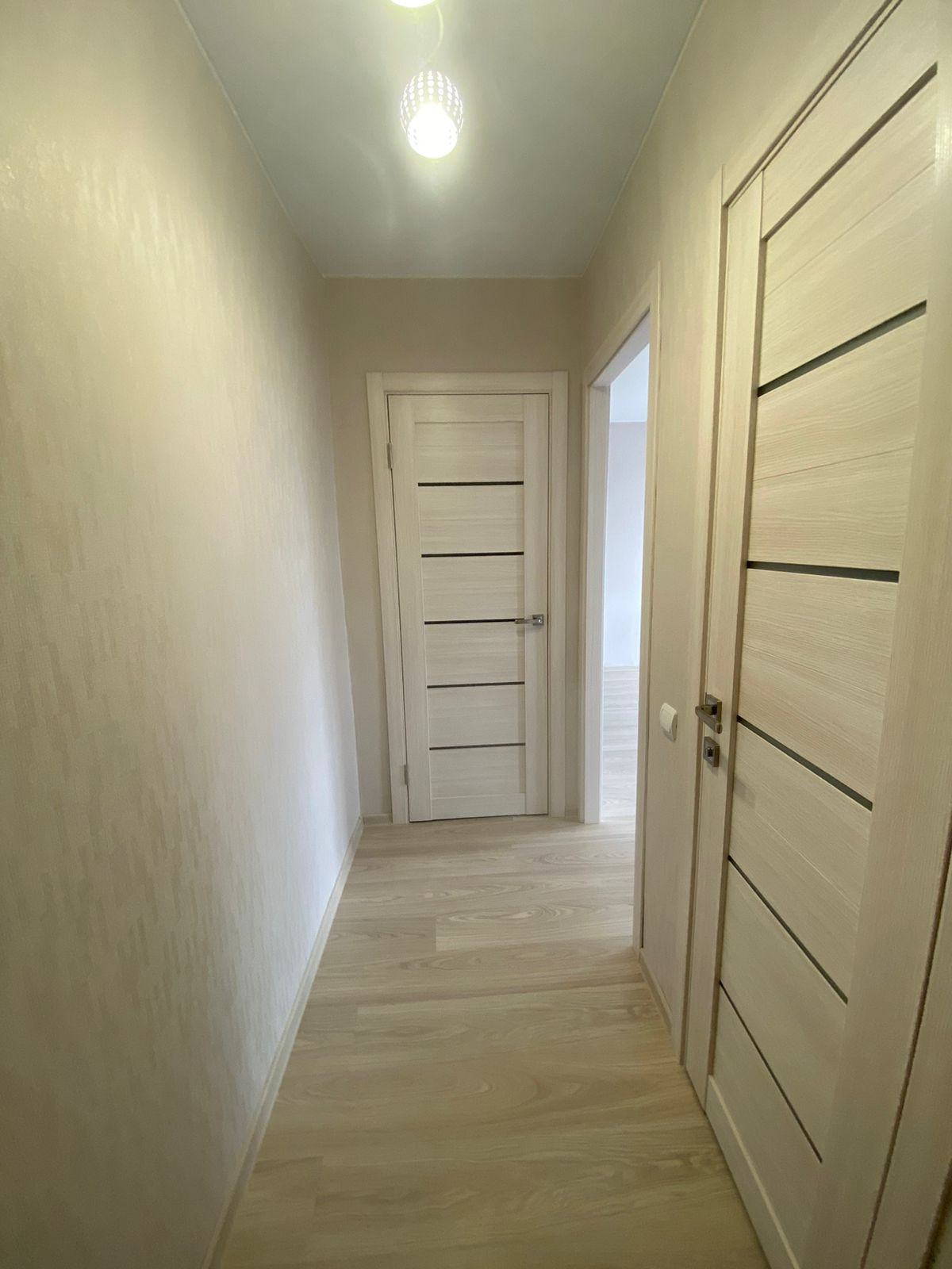 Квартира после ремонта: установлены стеклопакеты, заменена полностью вся проводка на медную, заменена сантехника. Новая входная и межкомнатные двери. На полу постелен ламинат, потолки натяжные.