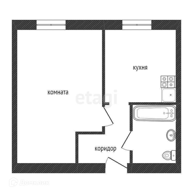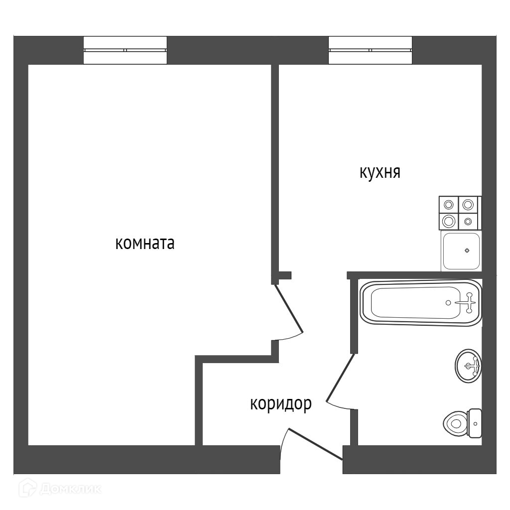 Характеристики квартиры: общая площадь 31,8 кв.м., большая кухня в 9 кв.м., комната 16,5 кв.м., с/у совмещен, высокий 1-ый этаж, балкона нет.