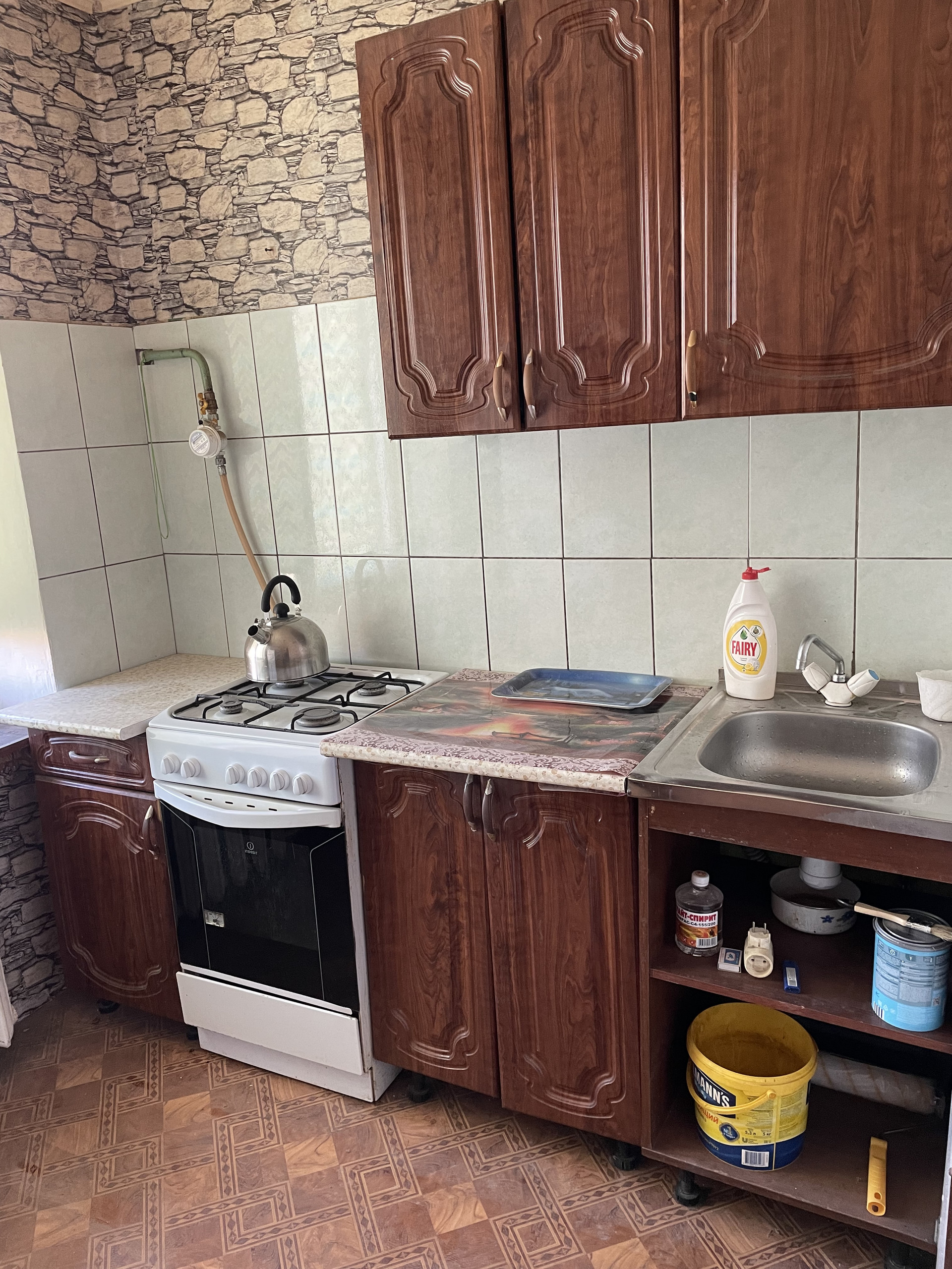 Техника:холодильник, микроволновая печь, газовая плита.
