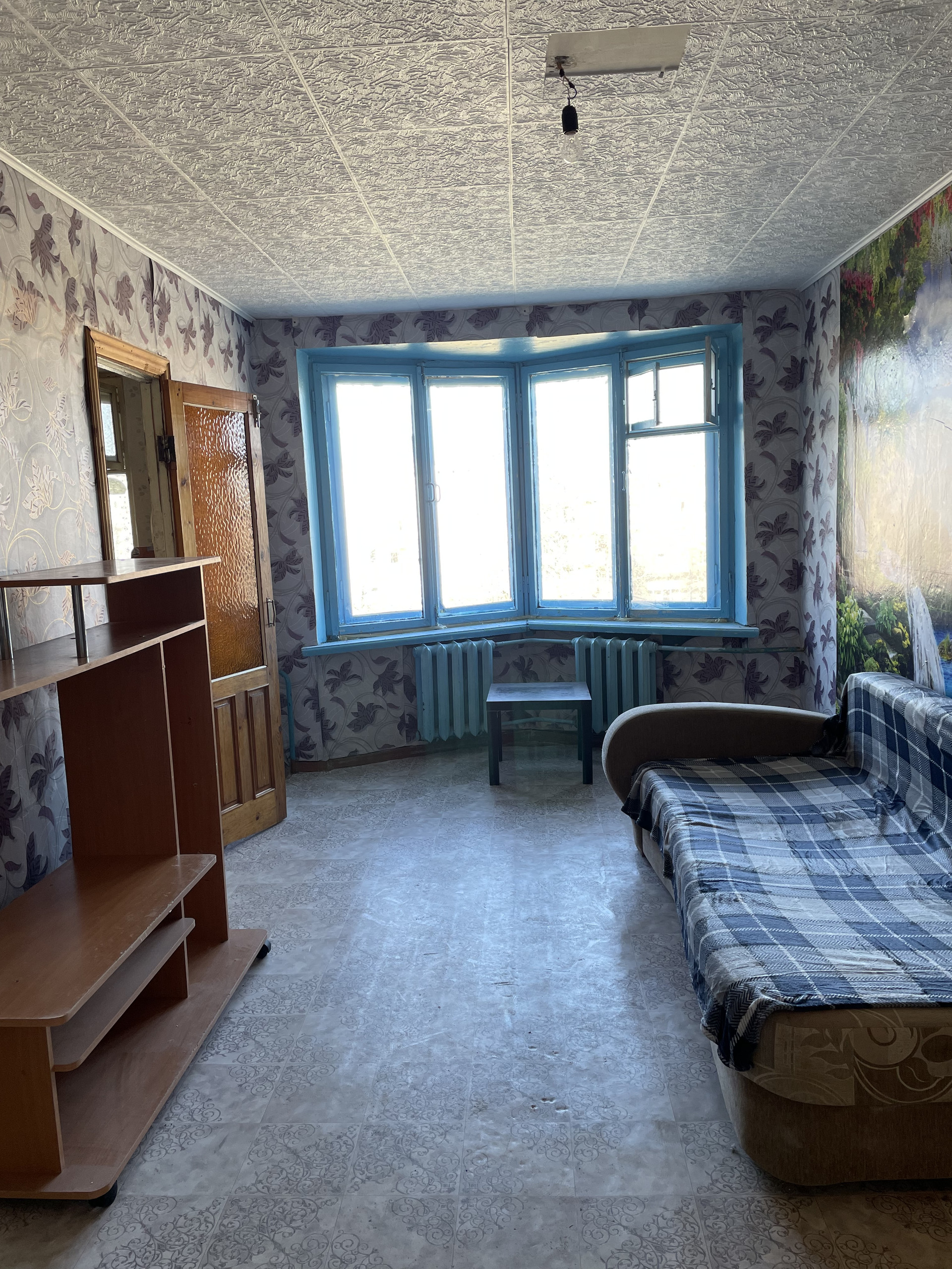 Мебель: раскладной диван, стойка под ТВ, комод, компьютерный стол, шкаф купе, стол на кухне, кухонные шкафы.