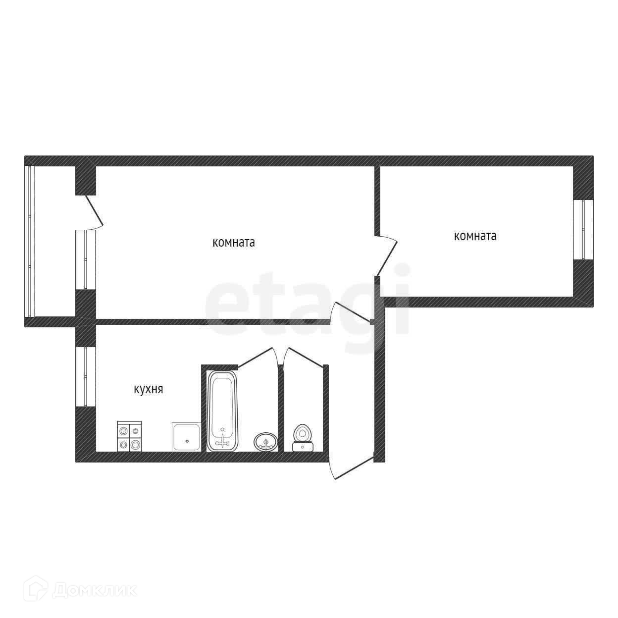 2-комнатная квартира, 43.1 м2, в аренду на длительный срок в Киришах, проспект Ленина, 34