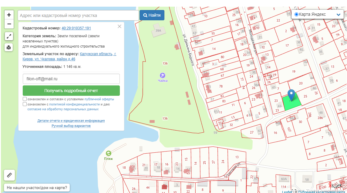 Участок между домами 43 и 46. Ровный. Сделал геодезию (колышки по границам). Коммуникации по границе участка. Кадастровый номер: 40:29:010357:191. Собственник.