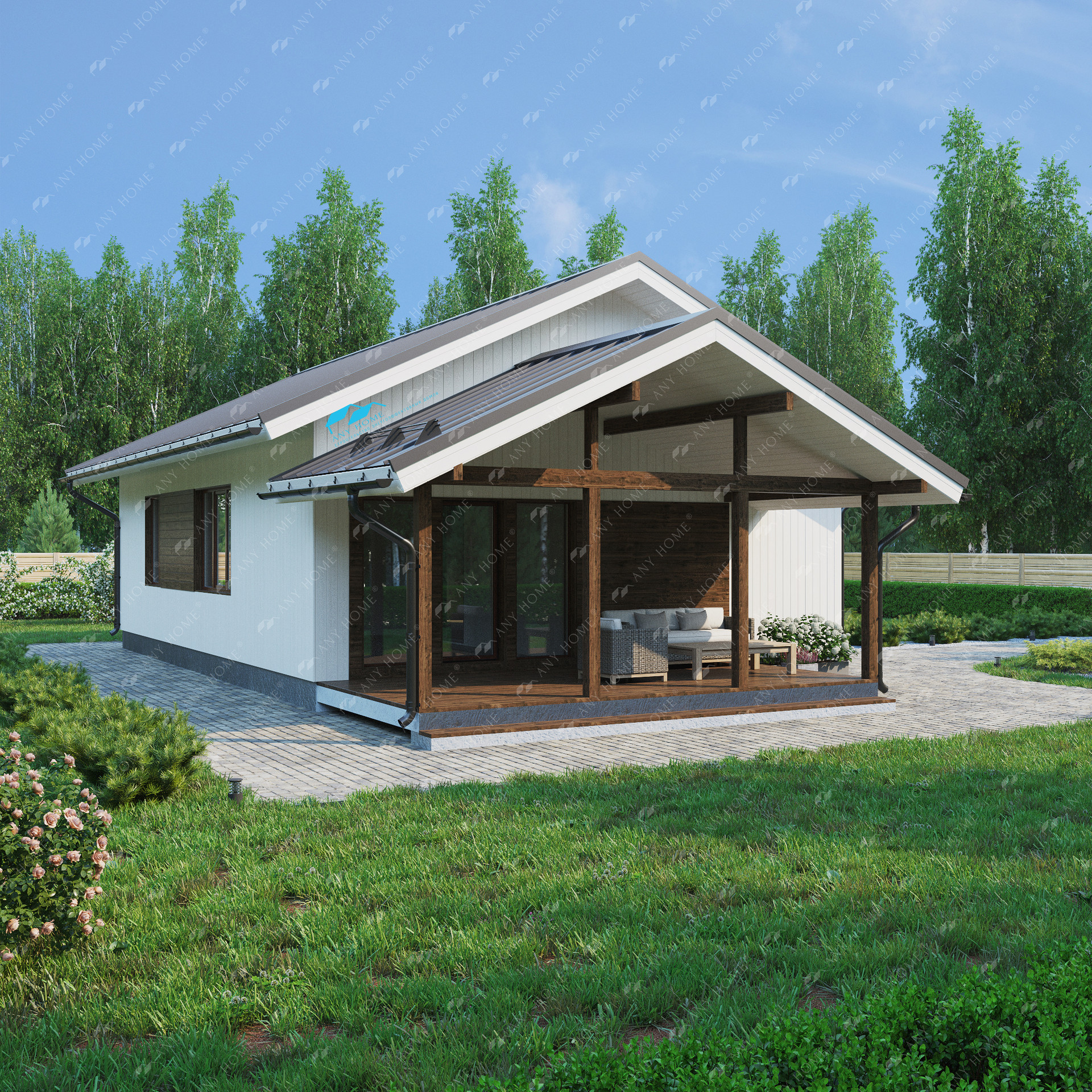 Дом в скандинавском стиле, общая площадь 83м2 + терраса 18,5 м2 + крыльцо 4,8м2