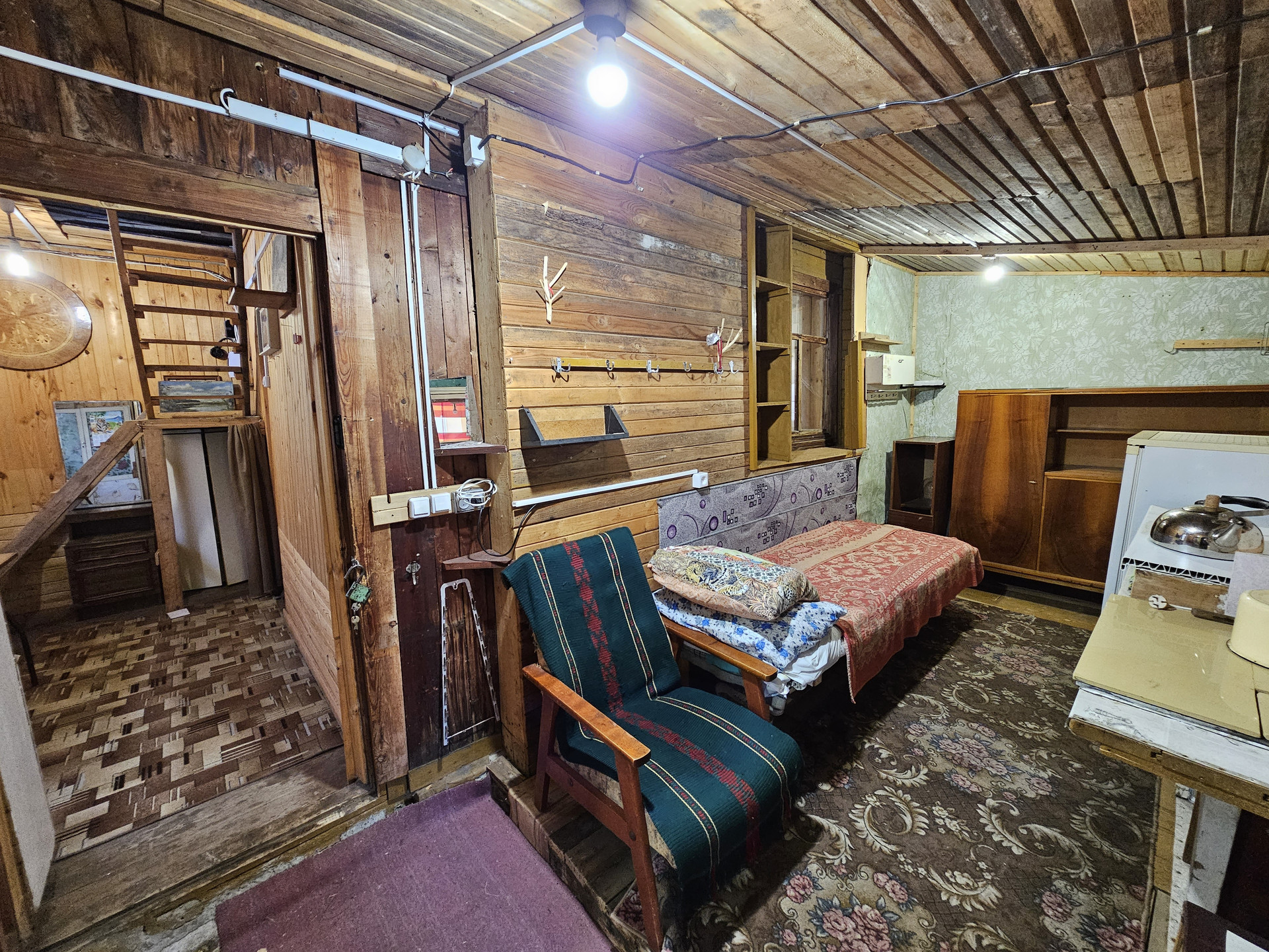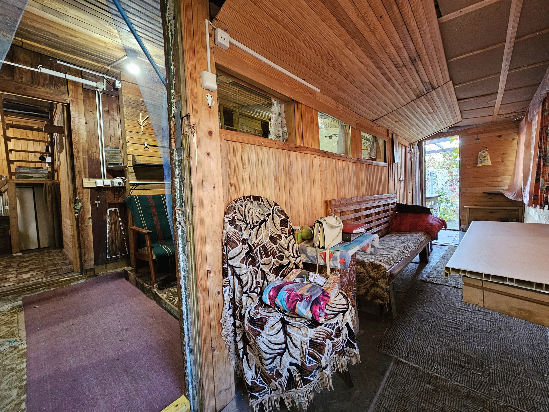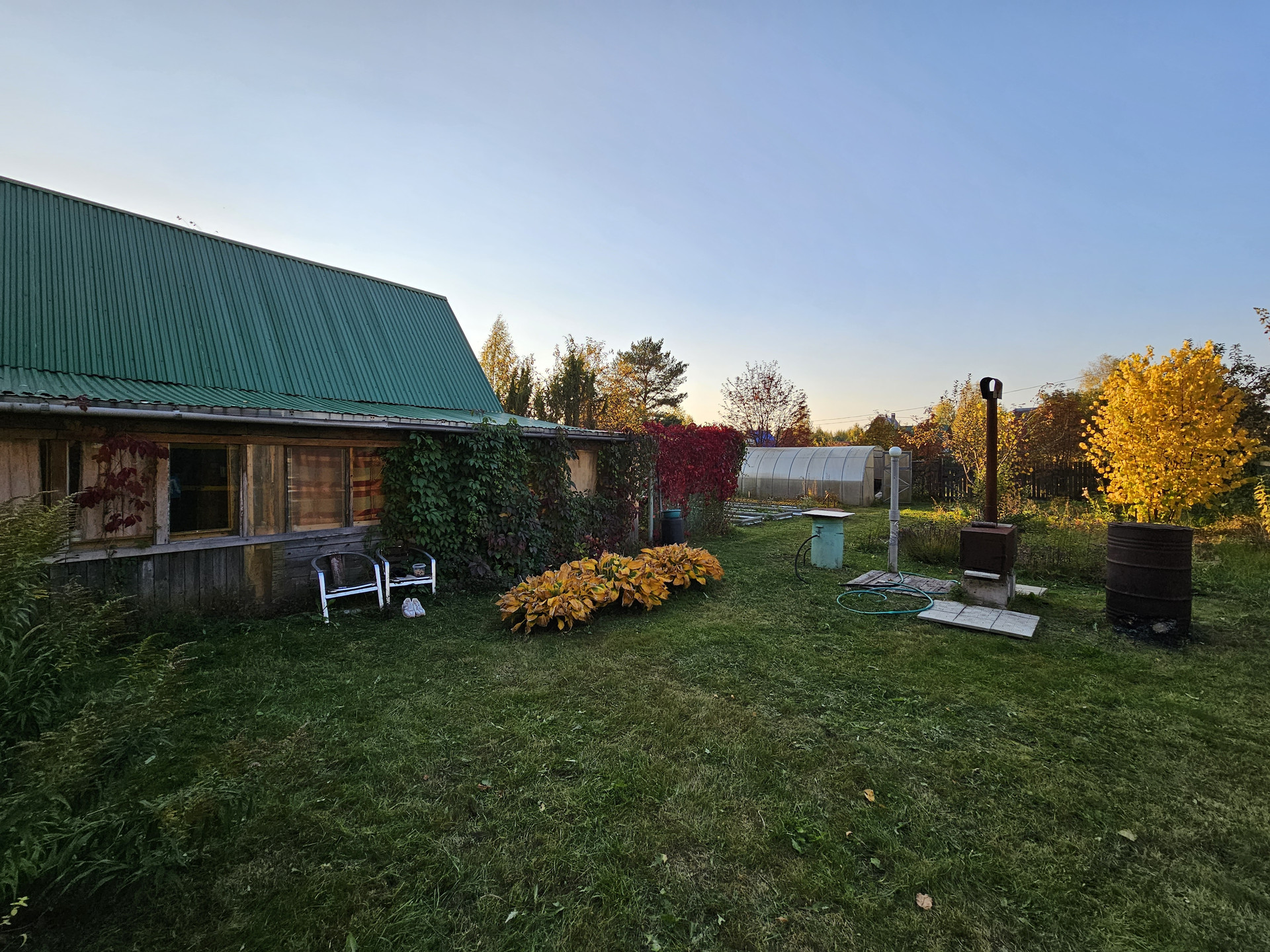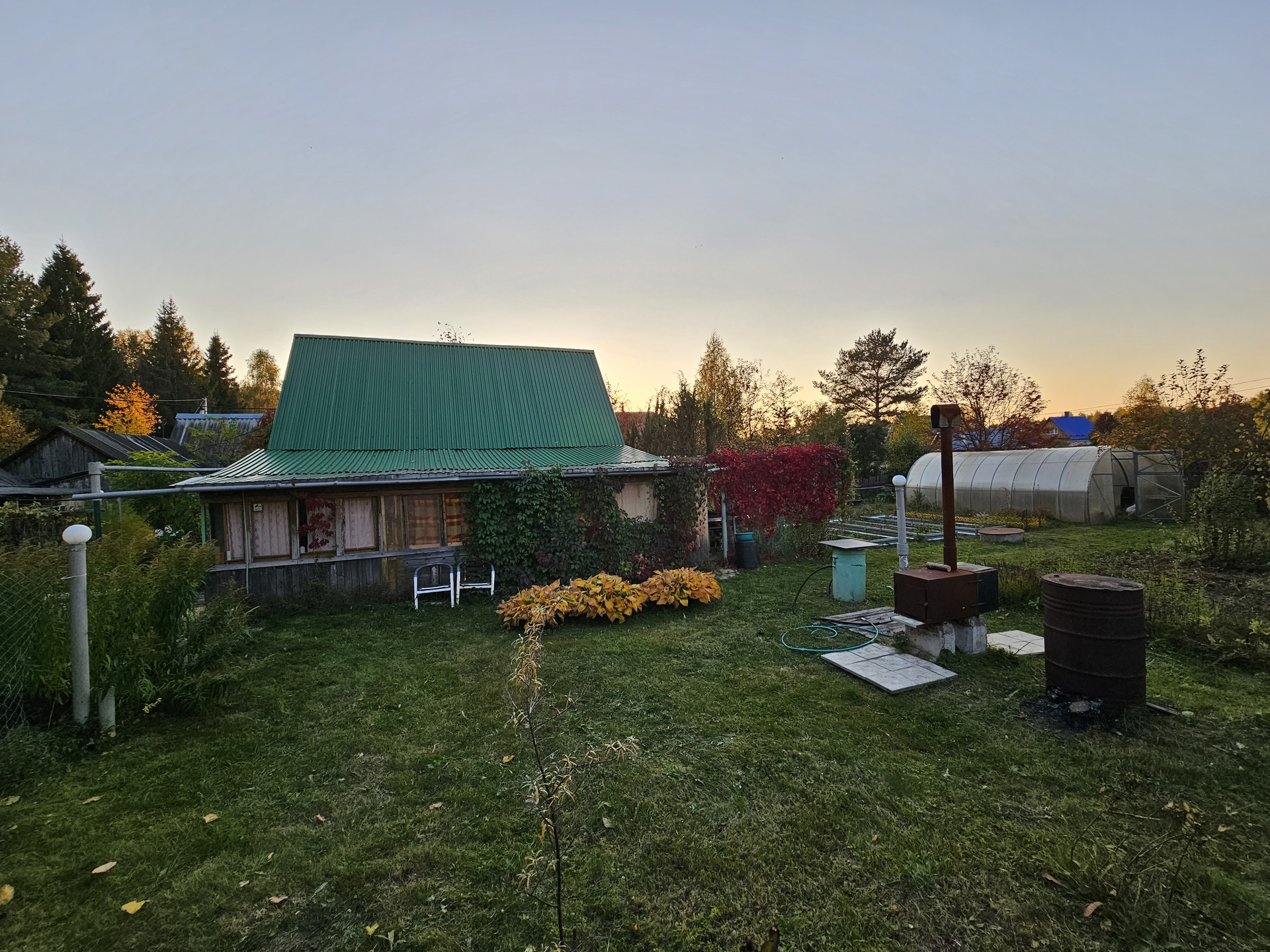 Своя скважина. Газ подведён к участку, уже можно подключаться. Заведено электричество. Отопление энергосберегающие инфракрасные панели с датчиками терморегуляции. Можно установить печь (голландку), место есть для установки и труба выведена. Стены - деревянные перегородки. Есть кладовка для хранения вещей. Баня с предбанником 4,5*3м. На участке хозпостройки. Летний душ. Теплица - высота - 2м, длинна - 5м, ширина - 3м. Гараж метал.5*3м. На участке есть плодово-ягодные насаждения. Зимой дороги гребут, подъезд без проблем. 10 минут до остановки. Межевание сделано. Отличное место для вашего отдыха, находится напротив Юркин парка.