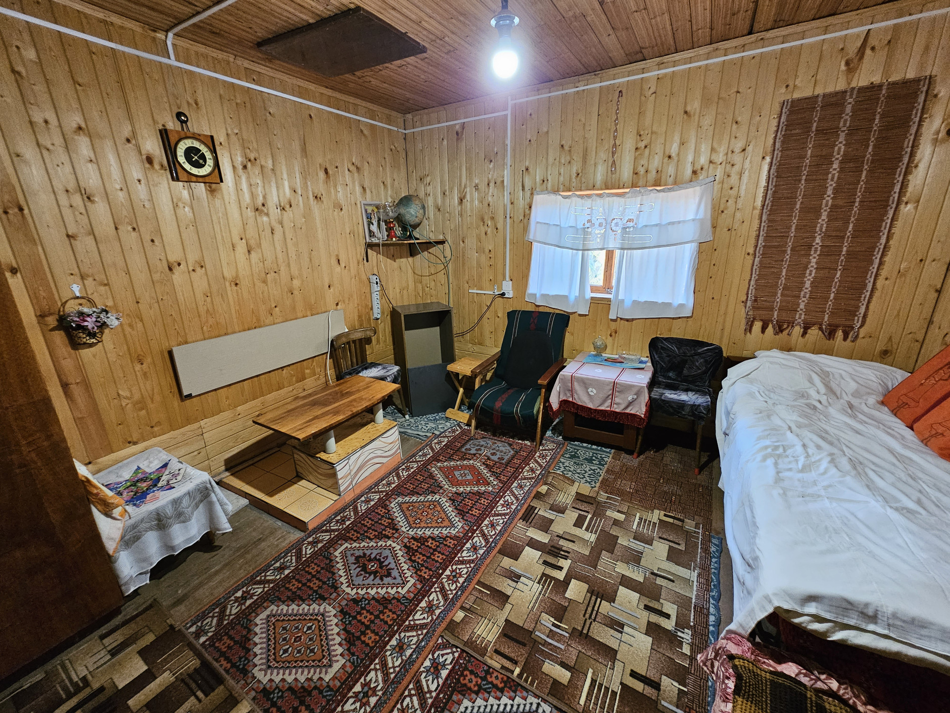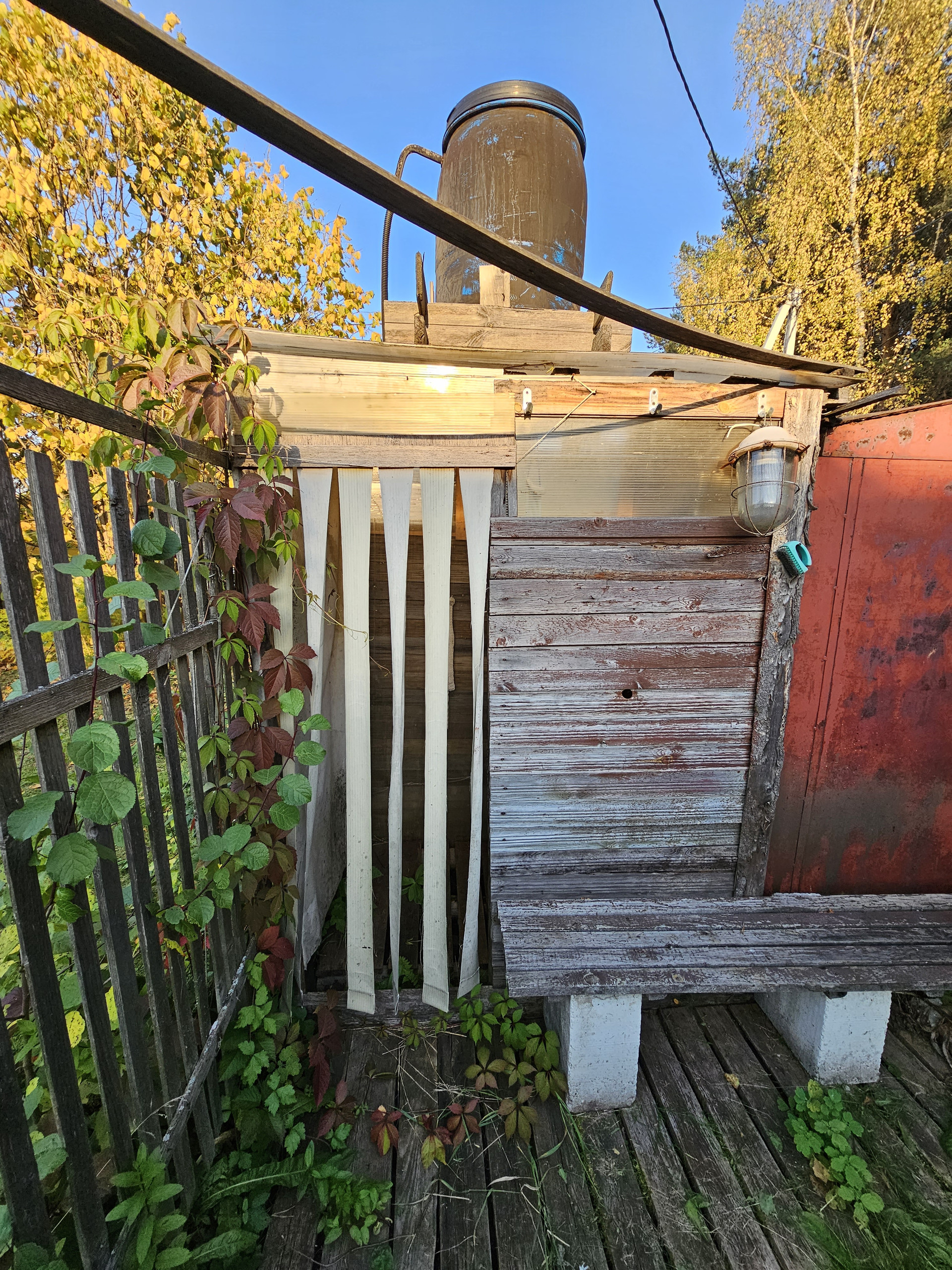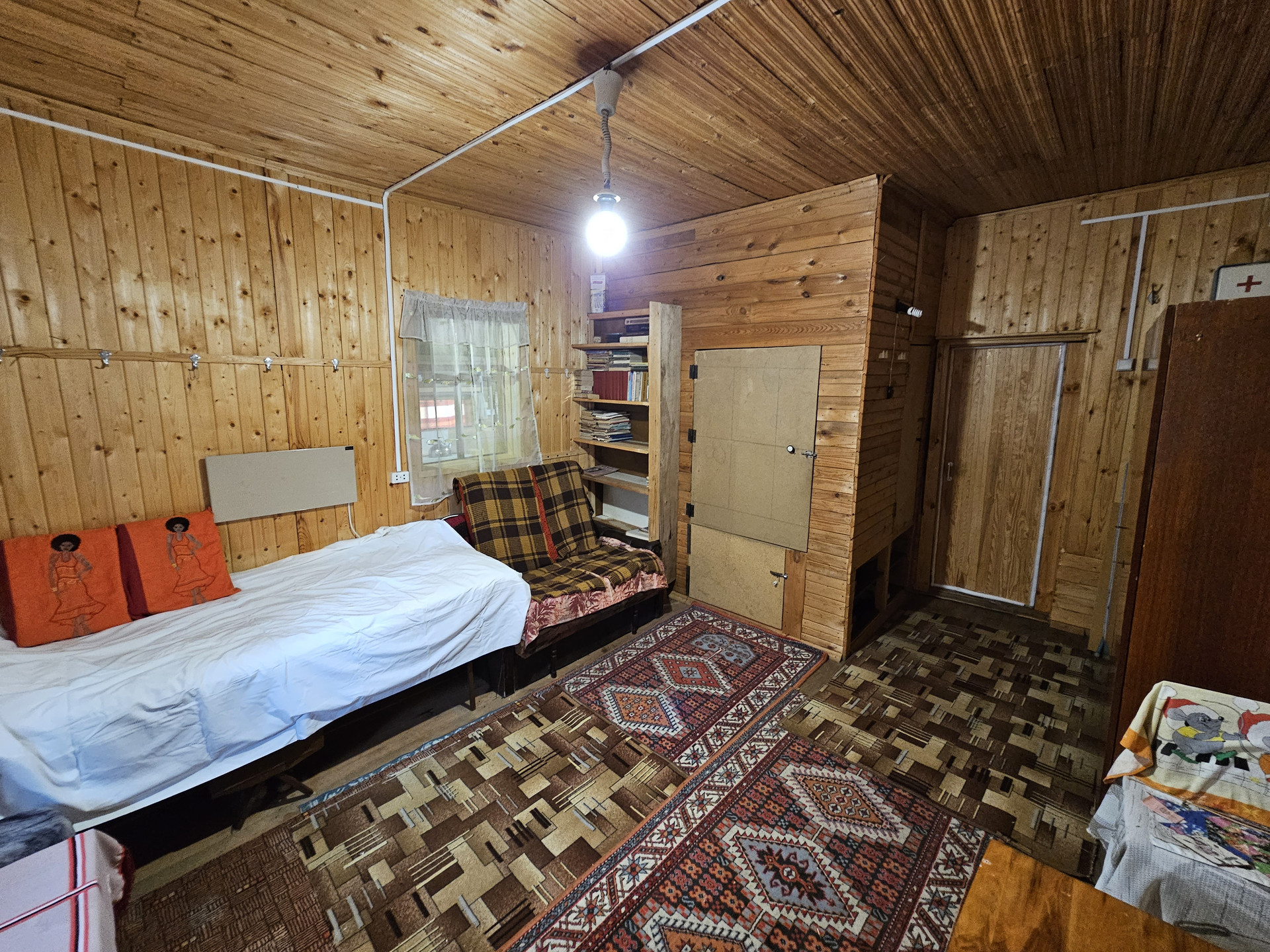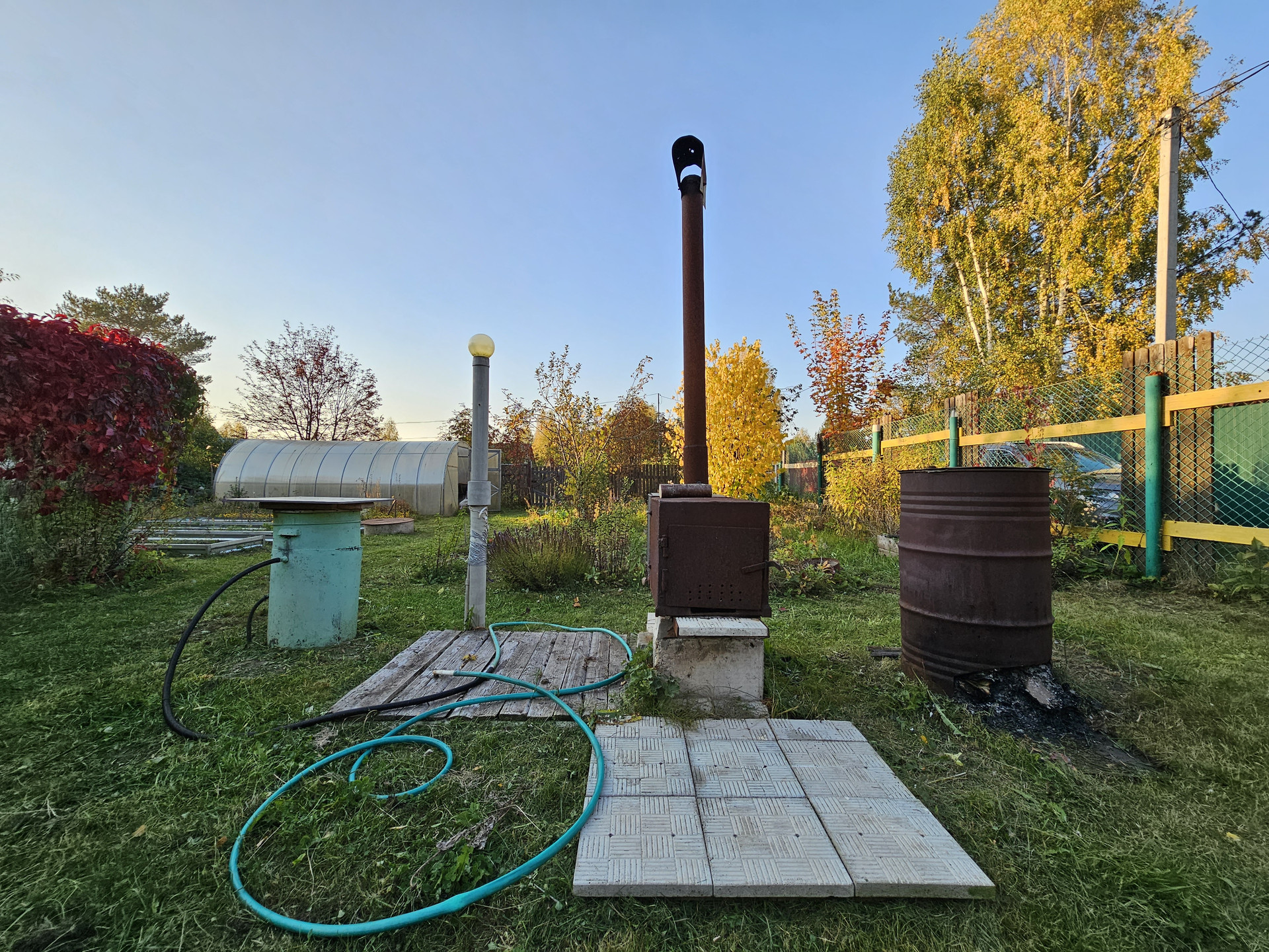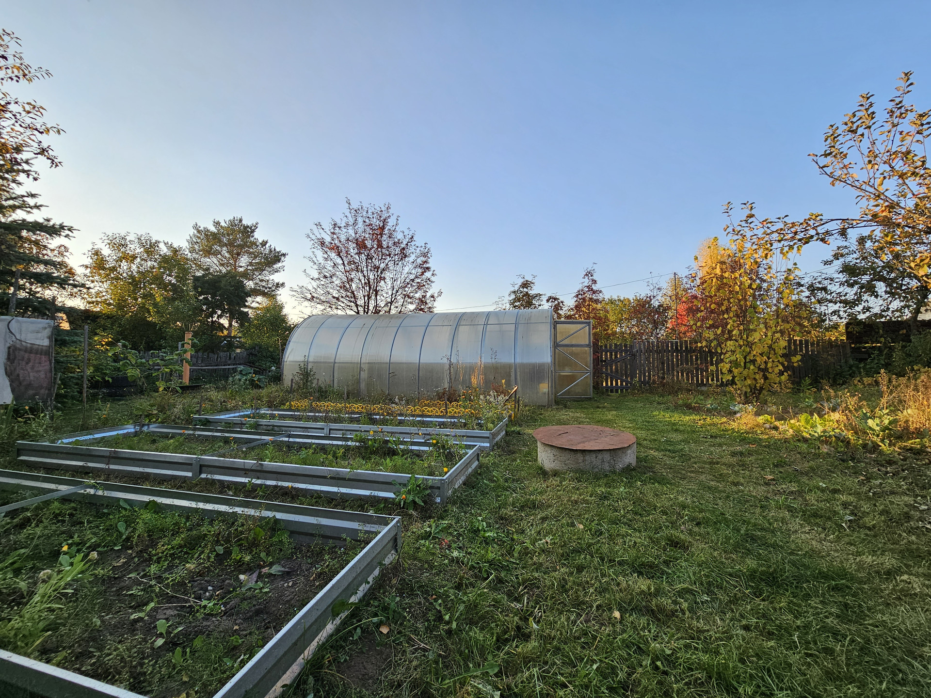 Своя скважина. Газ подведён к участку, уже можно подключаться. Заведено электричество. Отопление энергосберегающие инфракрасные панели с датчиками терморегуляции. Можно установить печь (голландку), место есть для установки и труба выведена. Стены - деревянные перегородки. Есть кладовка для хранения вещей. Баня с предбанником 4,5*3м. На участке хозпостройки. Летний душ. Теплица - высота - 2м, длинна - 5м, ширина - 3м. Гараж метал.5*3м. На участке есть плодово-ягодные насаждения. Зимой дороги гребут, подъезд без проблем. 10 минут до остановки. Межевание сделано. Отличное место для вашего отдыха, находится напротив Юркин парка.