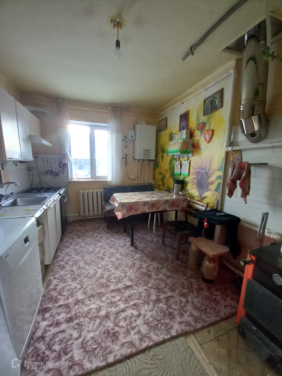 Отопление двух видов: дровяной котел и газовый.