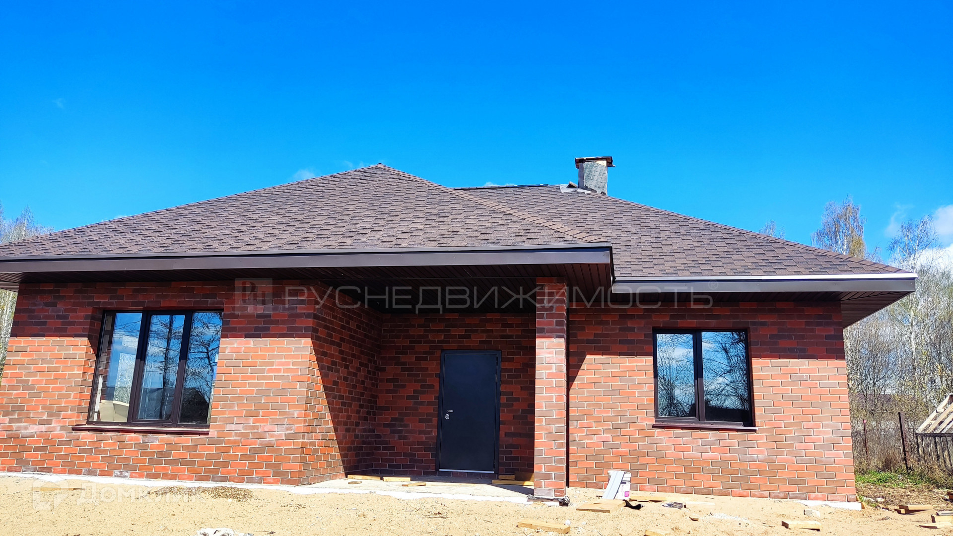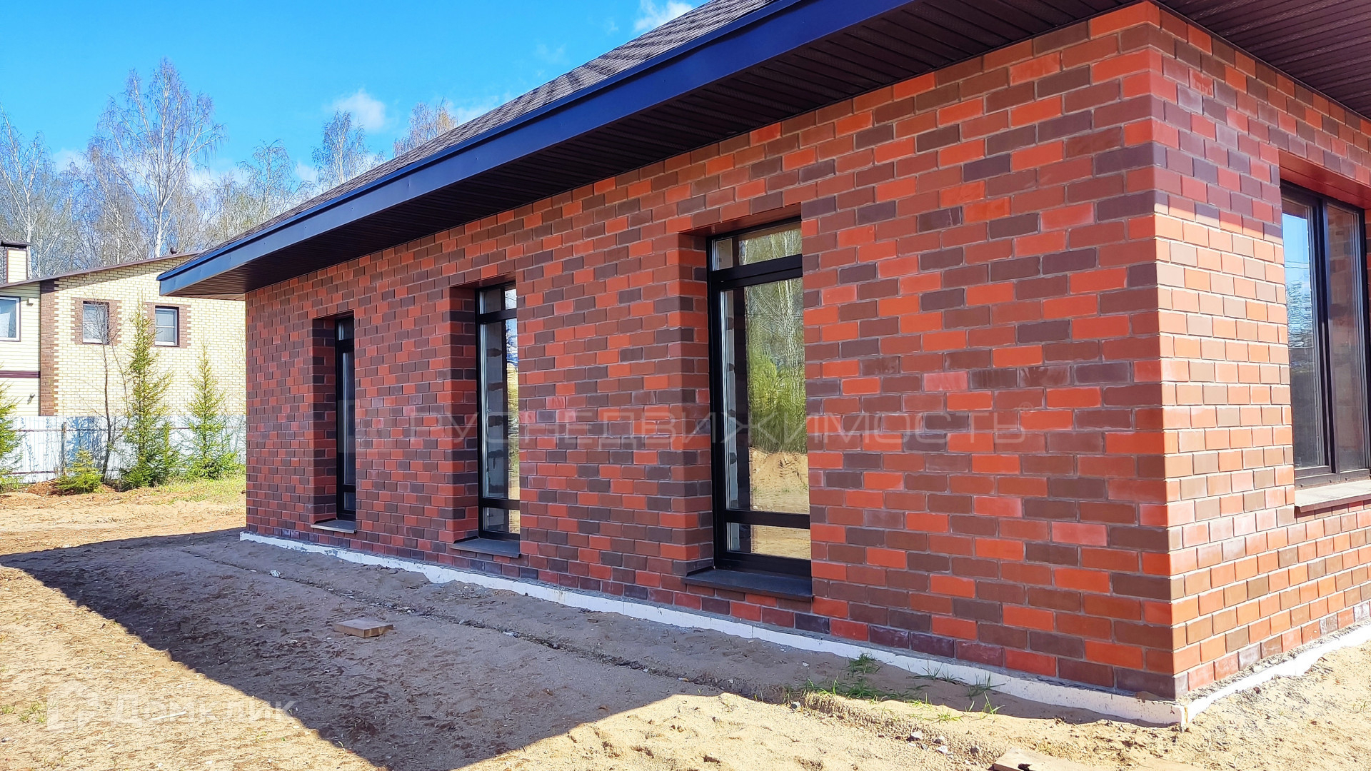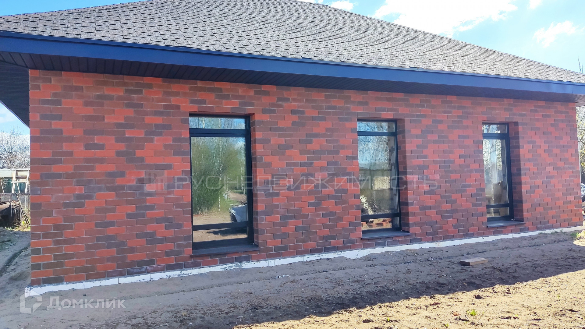В доме три комнаты, 2 санузла, кухня-гостиная с панорамными окнами. По сути это евро-четырехкомнатный дом.