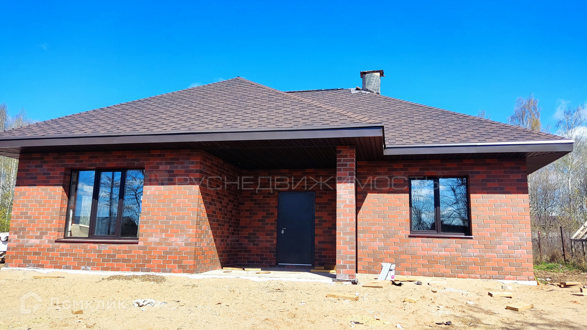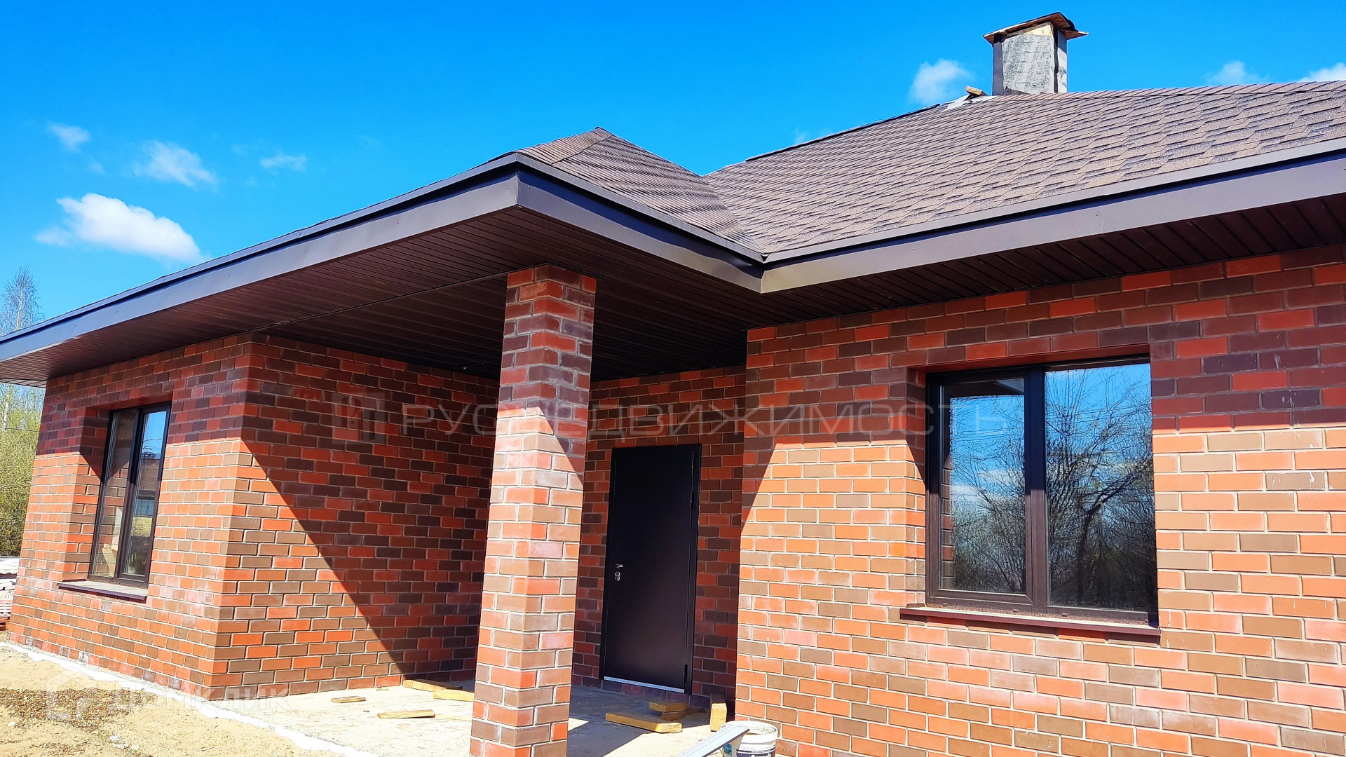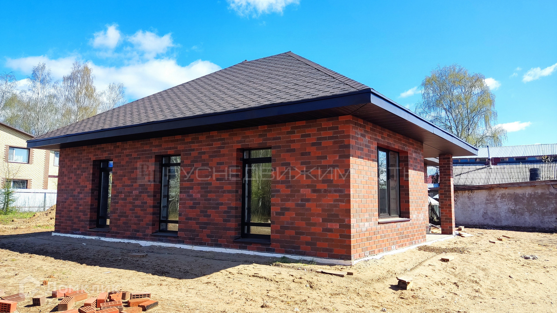 В доме три комнаты, 2 санузла, кухня-гостиная с панорамными окнами. По сути это евро-четырехкомнатный дом.
