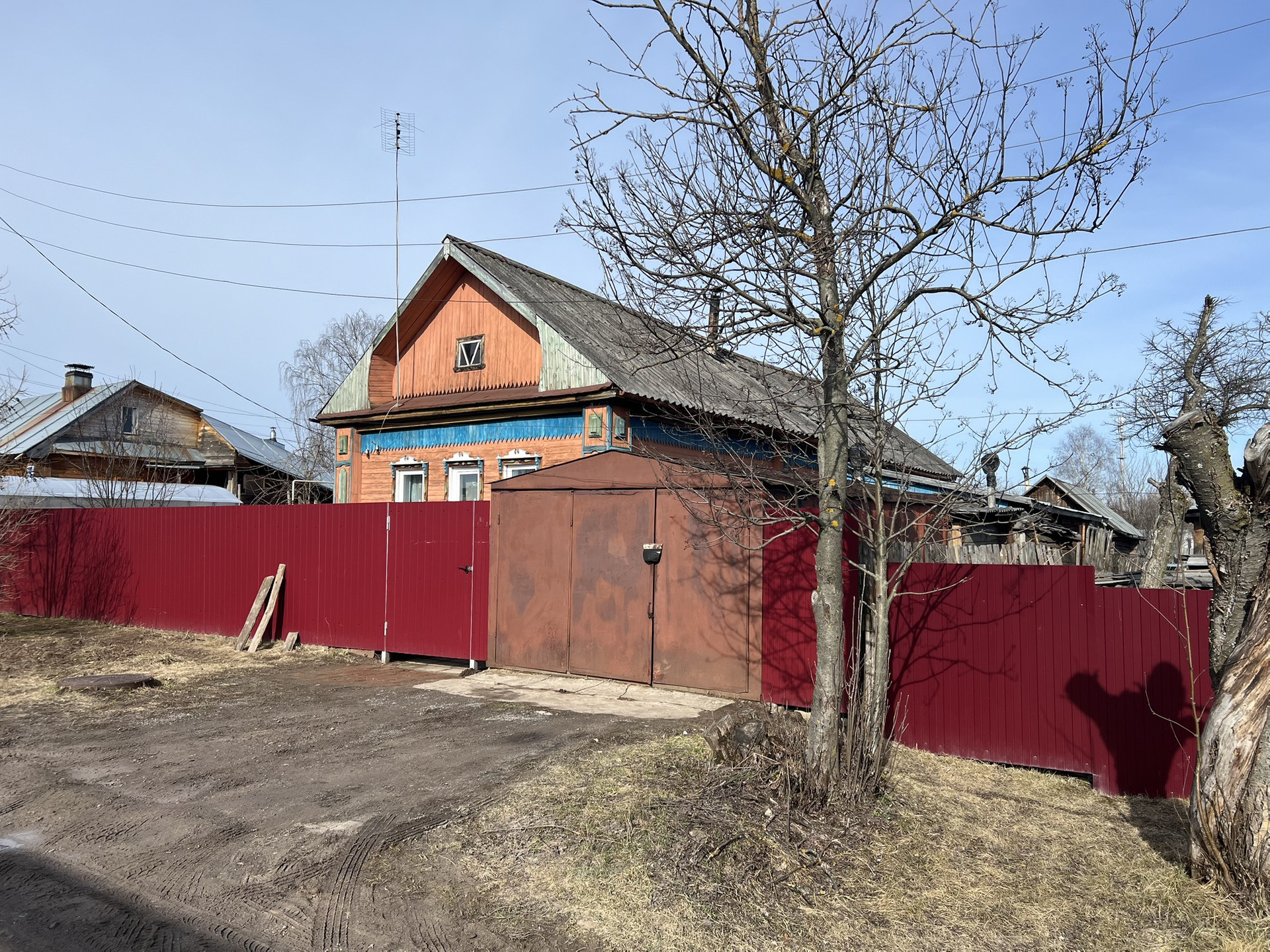 Приусадебные постройки: баня, овощная яма, гараж, сарай для дров, хлевы для птицы и скота, теплица 40 кв.м., посажены деревья, кустарники, ягодники, цветы.