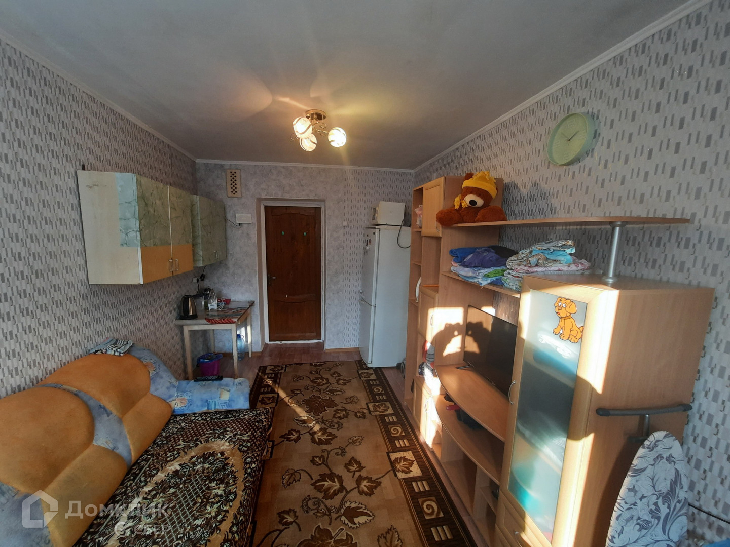 Комната в хорошем состоянии, теплая, светлая, установлено пластиковое окно, линолеум, мебель.