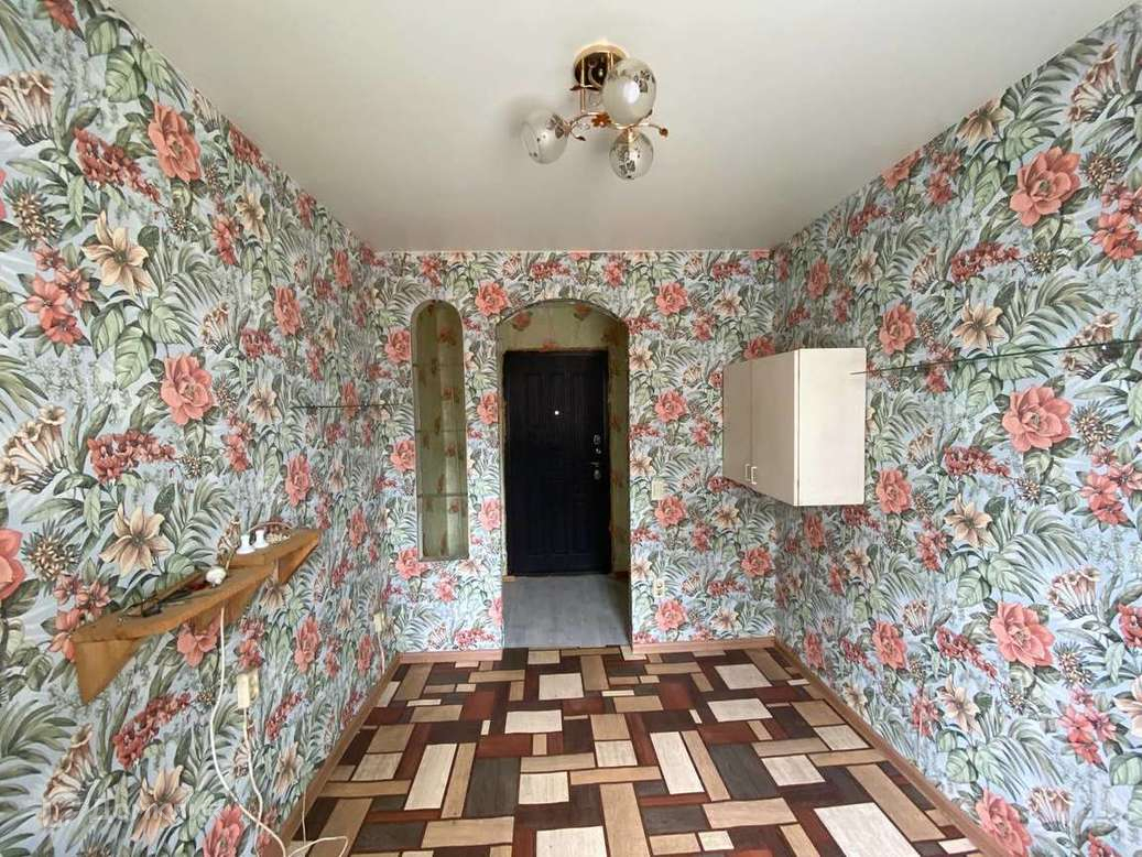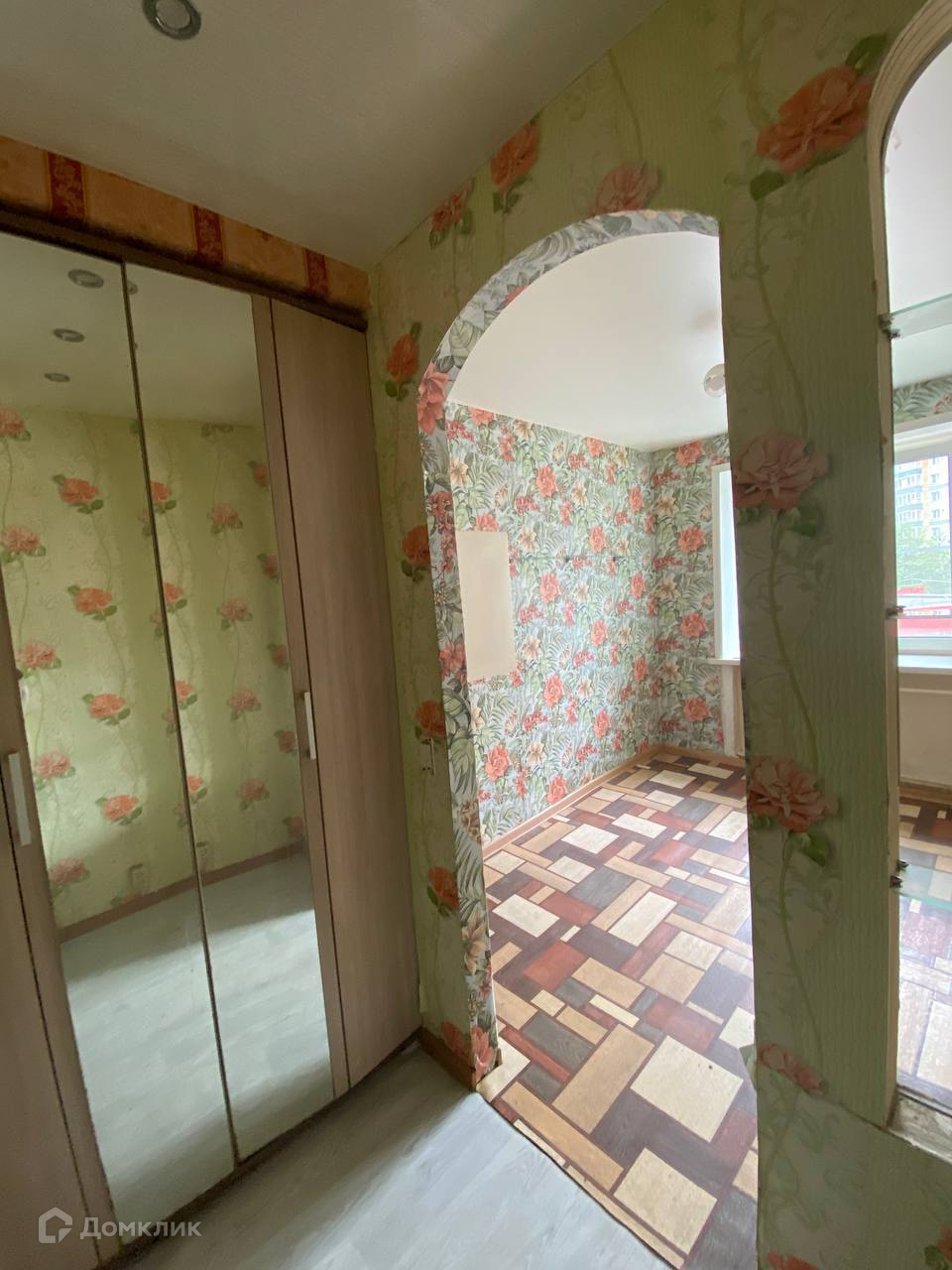 В комнате остается встроенный шкаф-купе.
