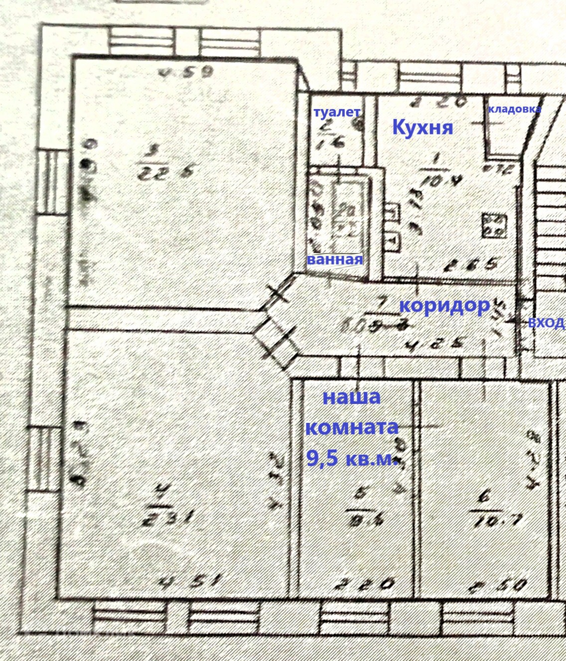 Жилая площадь 9.5 м2