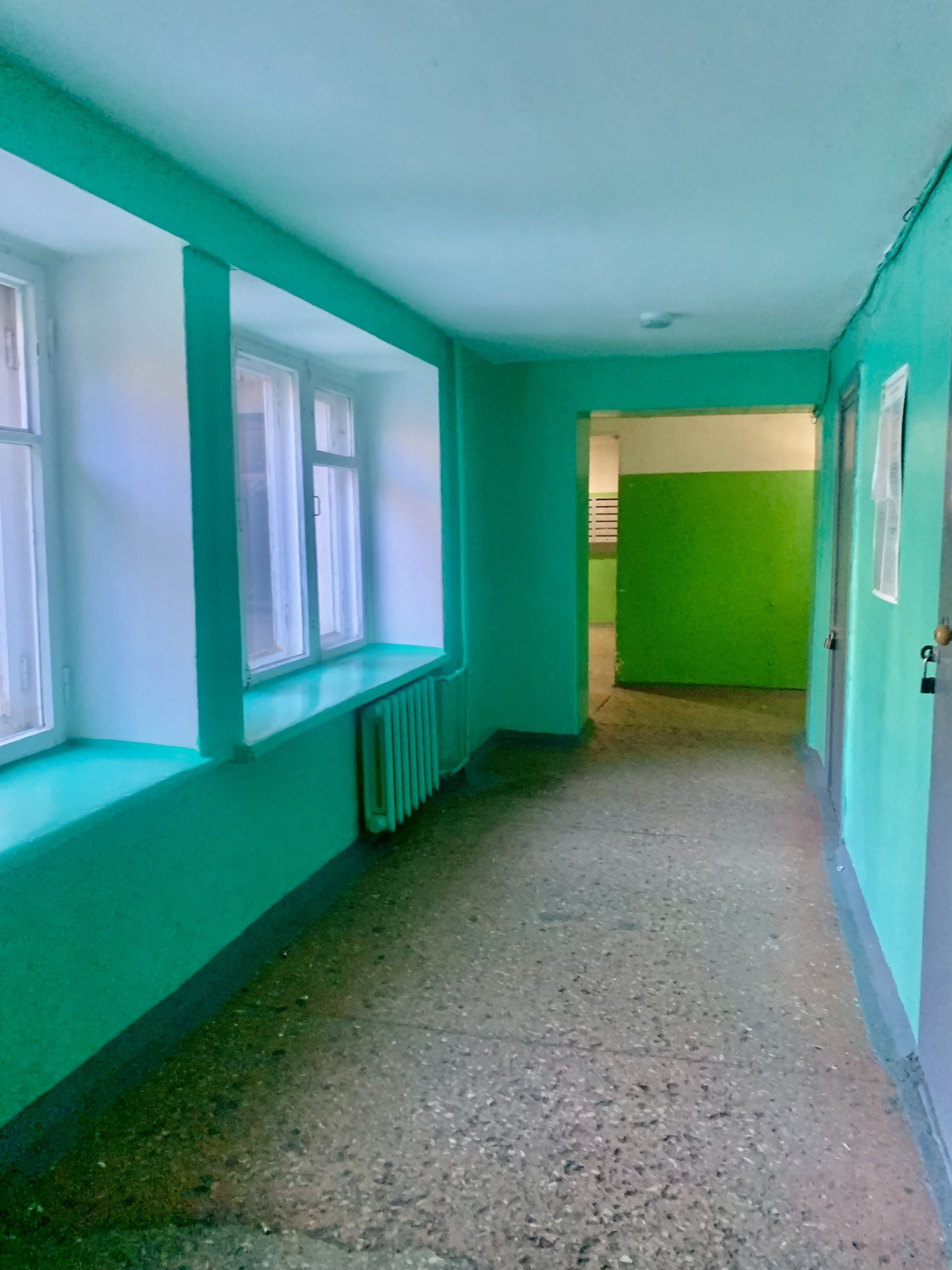 В комнате сделан косметический ремонт, окно пластиковое . Места общего пользования в хорошем состоянии. Ванная комната и санузел на две комнаты. Дополнительный  коридор так же на две комнаты. Кухня на четыре комнаты.