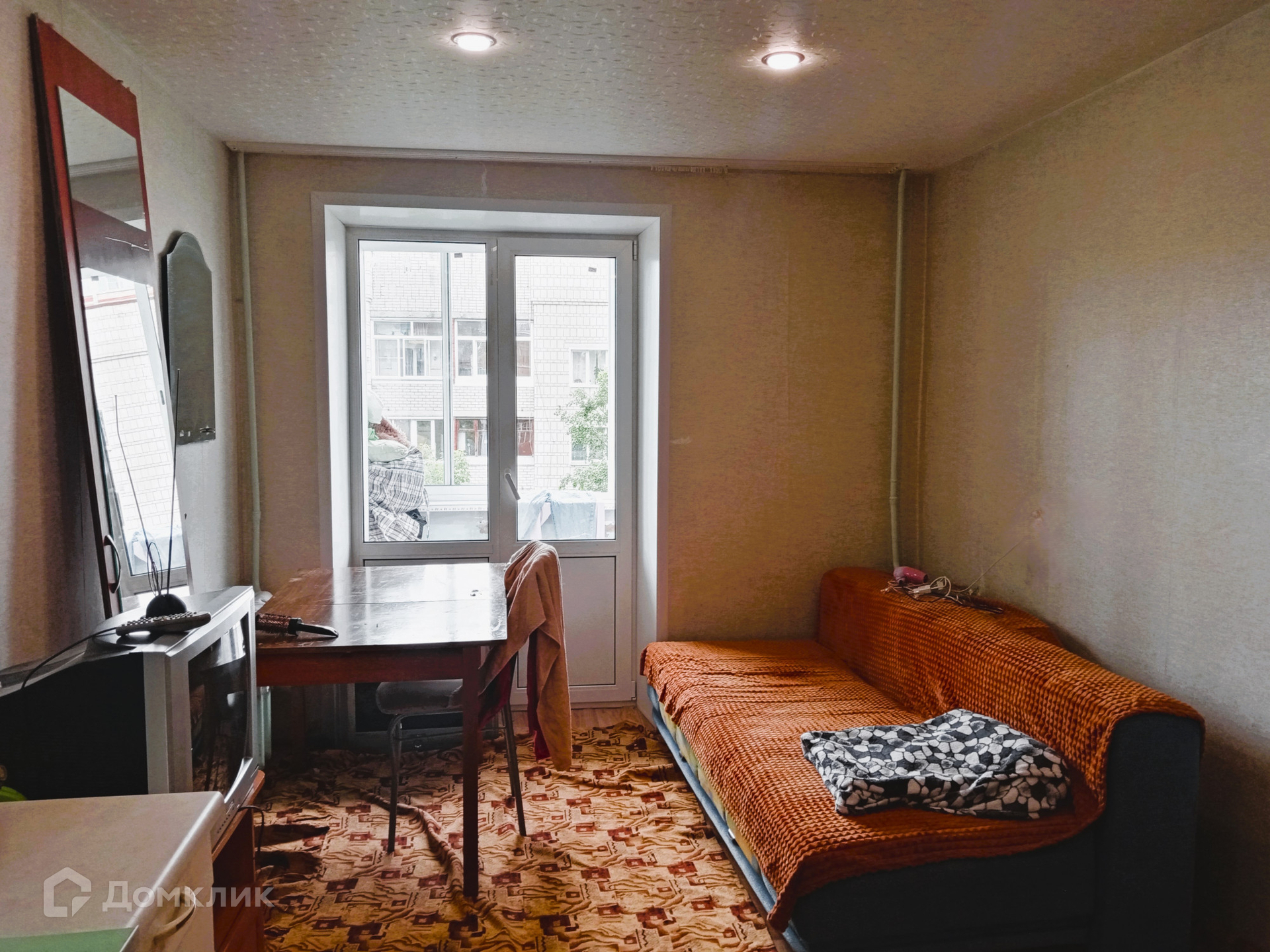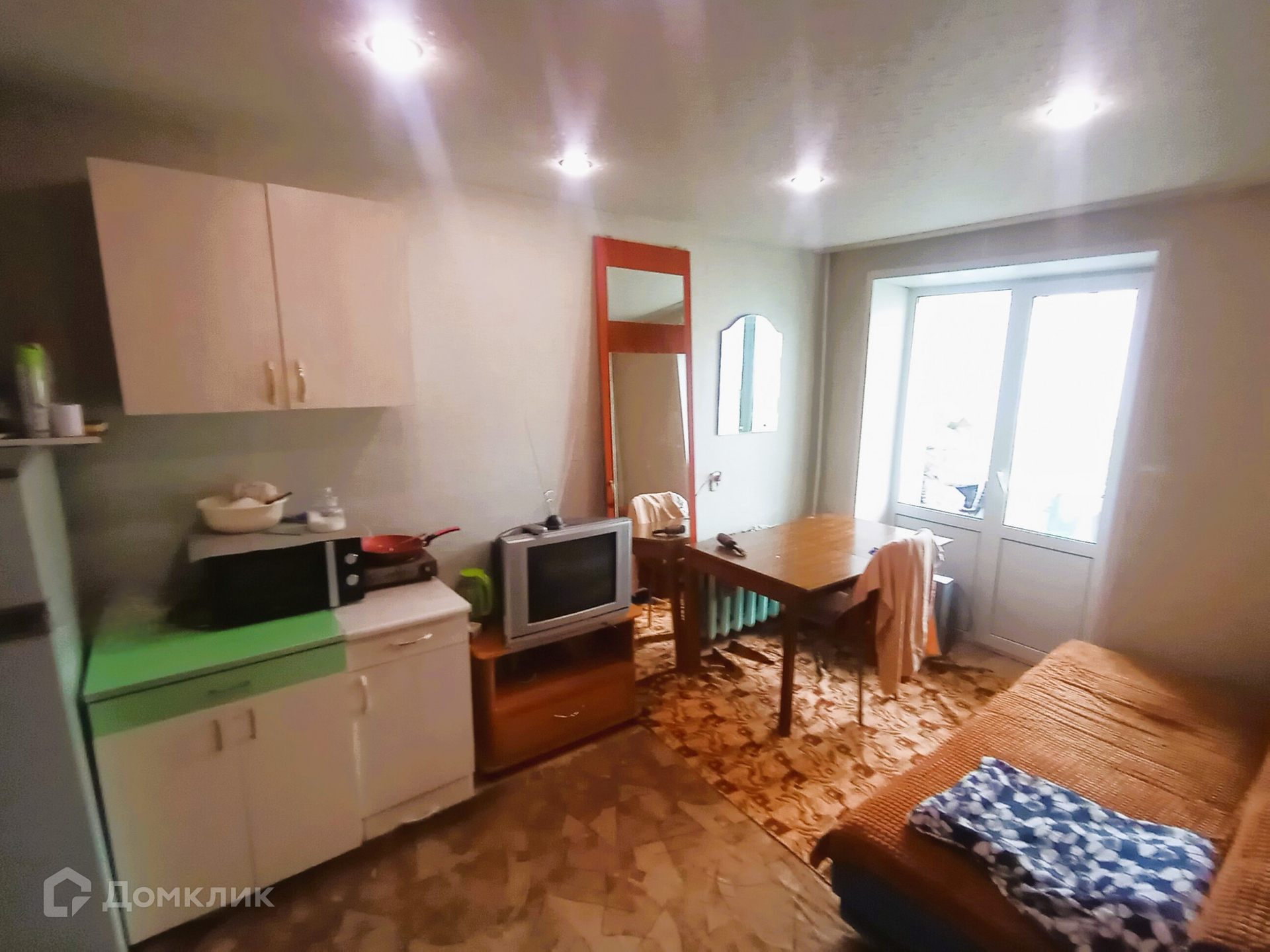 Площадь комнаты составляет 12,6 квадратных метров.. Комната продается с МЕБЕЛЬЮ И ТЕХНИКОЙ. Состояние хорошее, можно заехать и жить. Окно -пластик, балкон застеклён-пластик, потолок натяжной со встроенными точечными светильниками, пол линолеум.
