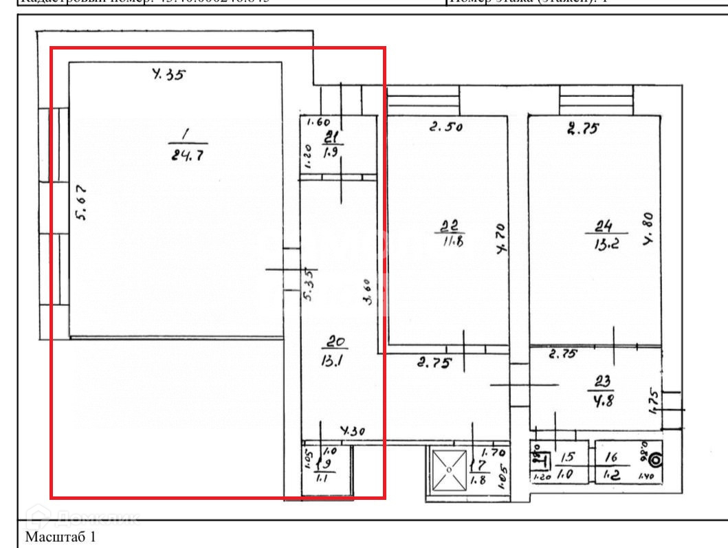 Площадь комнат