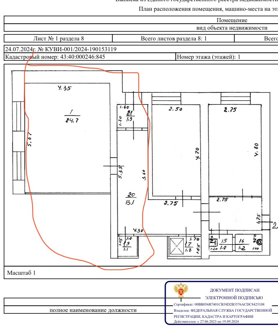 Жилая площадь 24.2 м2