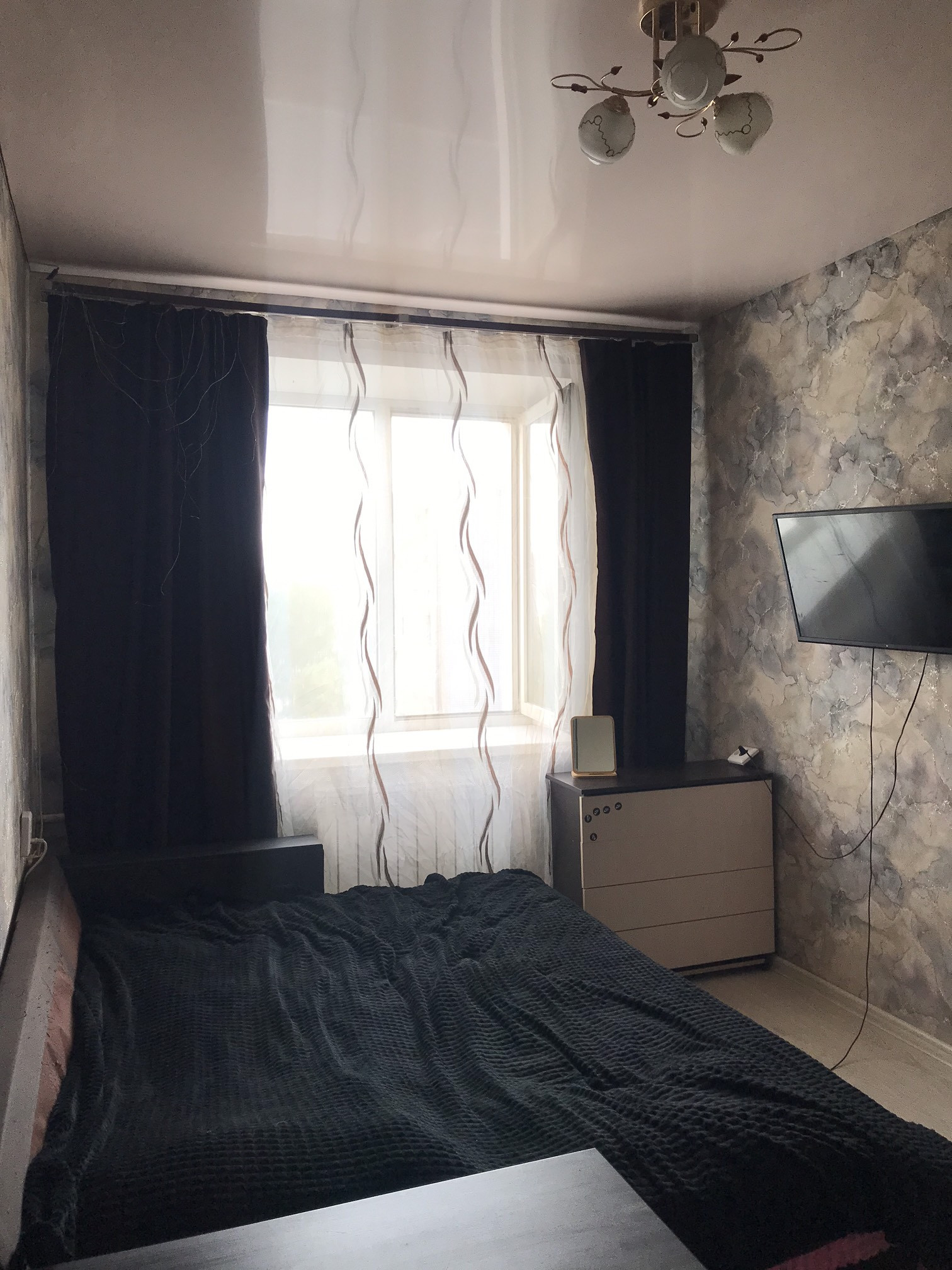 В комнате сделан косметический ремонт, натяжной потолок, пластиковый стеклопакет , ламинат.