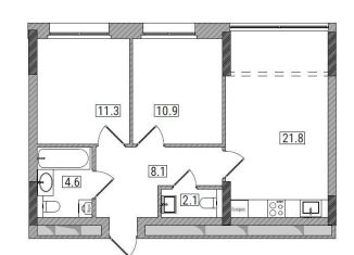 Общая площадь: 58.9 м2