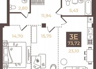 Продажа 3-ком. квартиры, 73.7 м2