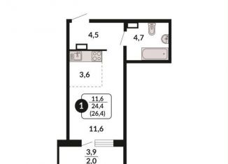 Общая площадь: 26.4 м2