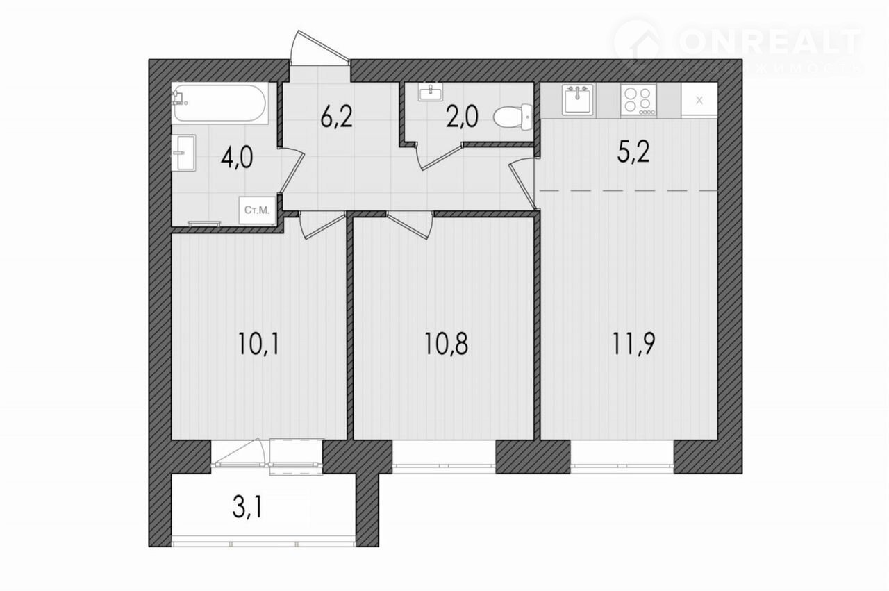 Общая площадь 53.3 м2